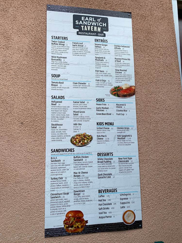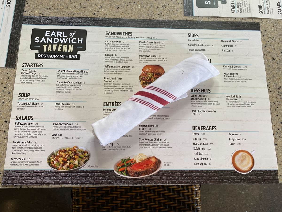 - Below is the full menu for Earl of Sandwich Tavern Restaurant & Bar: