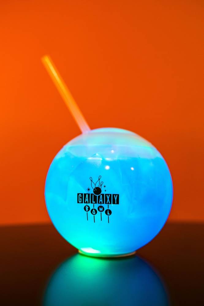 - Laissez les bons temps Rouler Hurricane – Light Rum, Rum, Passion Fruit Liqueur, Orange Juice, Lemon Juice, Grenadine; Served in a light-up souvenir Galaxy Bowl tumbler with straw. Refills will be $22 with the cup on Mardi Gras cocktails only.