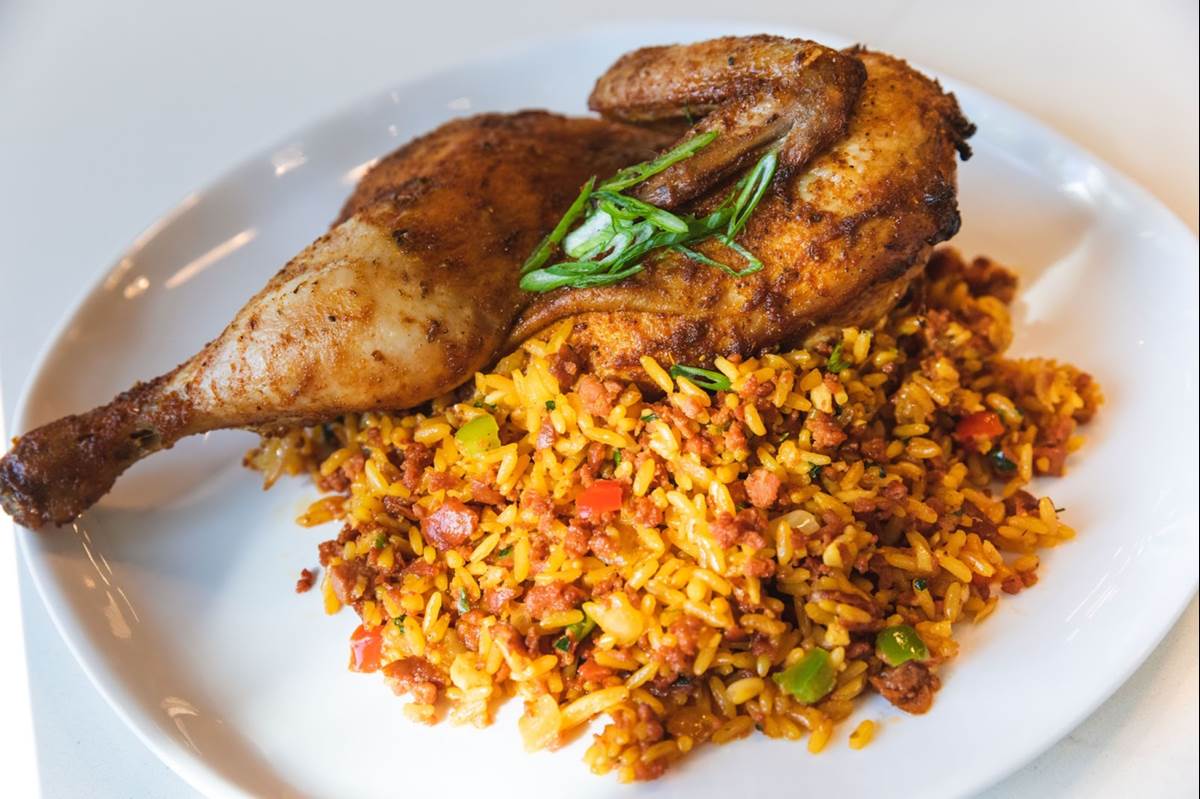 - New Orleans Cajun Roasted Chicken & Dirty Rice – Cajun Spiced Oven Roasted Half Chicken, Creole Rice, Andouille Sausage, Sweet Candied Bacon