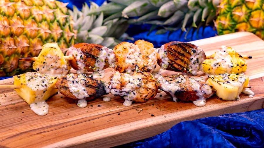 - Pineapple Shrimp Skewer: Island-inspired grilled shrimp, spicy sausage, and sweet pineapple