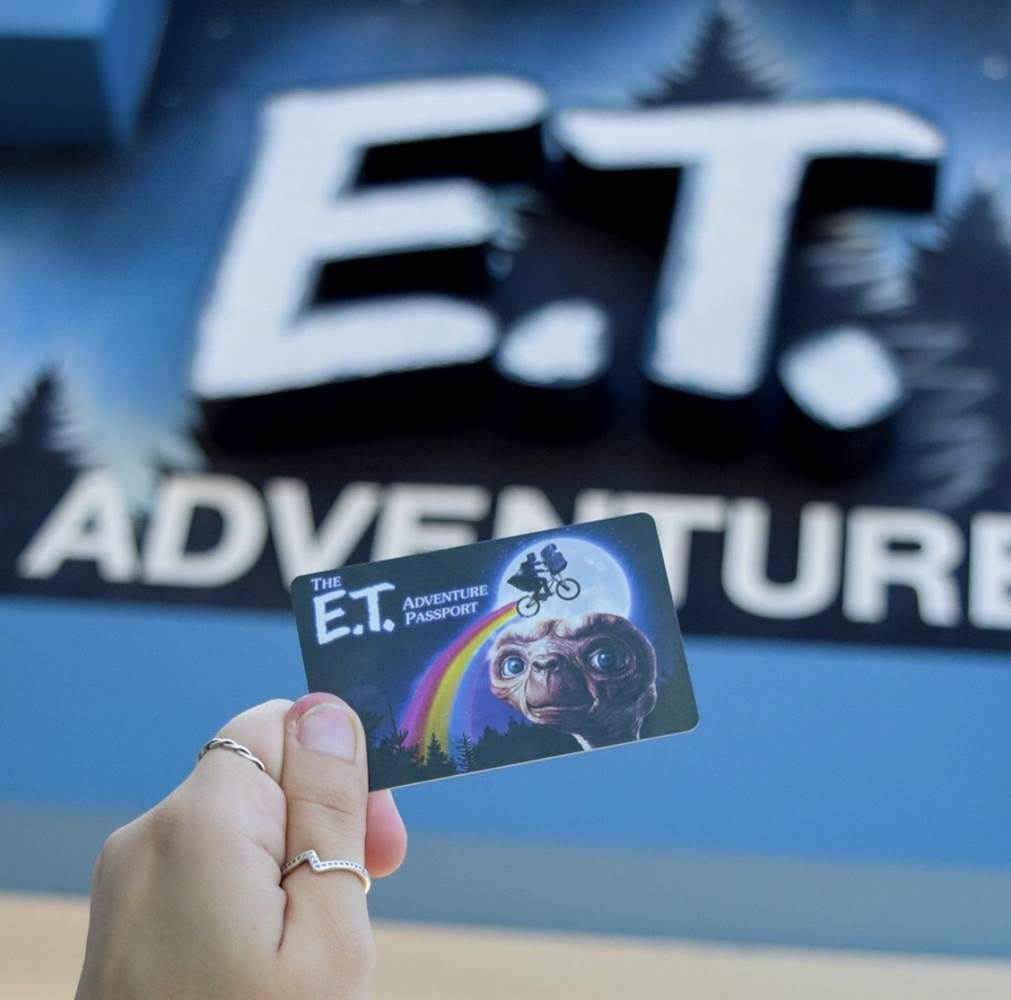- Recently, the park shared the news that the plastic passports that play a part in the attraction experience have been updated. Formerly, the attraction utilized passports that were similar to that of the original film’s poster, featuring the silhouette of the bike over the moon. While that image still remains, it now includes E.T. himself as well as a shimmering rainbow. Interestingly, room keys for on-site Universal Orlando resort hotels also use movie posters, and E.T. is one of them, giving a similar look to the former plastic cards.