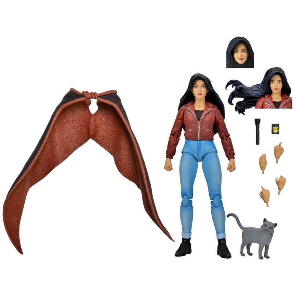 - Comes with interchangeable heads and hair parts, police badge, flashlight, Cagney the cat, and folded wings for NECA's Brooklyn action figure (Brooklyn sold separately).