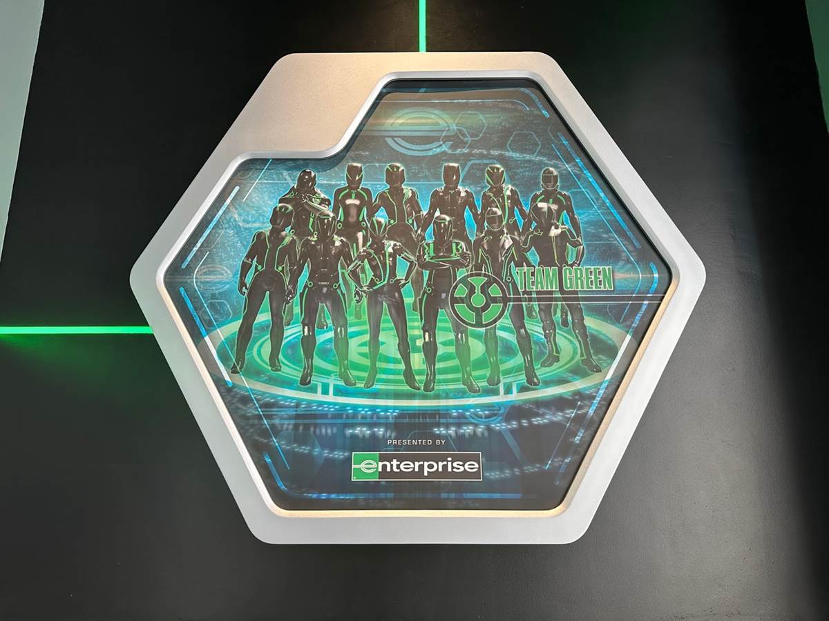 At today’s media event previewing TRON Lightcycle / Run ahead of its official opening on April 4th, 2023, we got our first look inside the Team Green post-show presented by Enterprise.