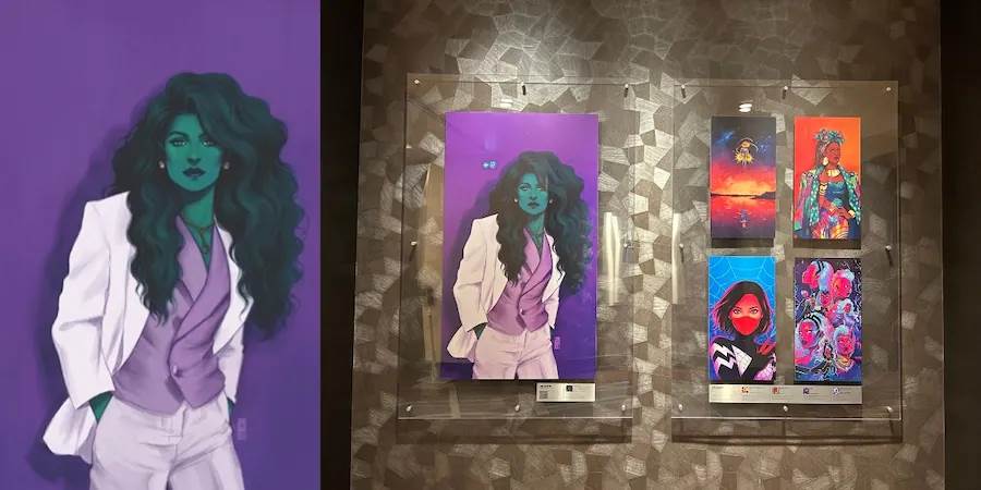 - Currently on display at the “Women of Marvel" exhibition is cover art of She-Hulk, which she created in 2021, as well as variant comic book covers featuring Captain Marvel, Shuri Black Panther, Storm and Silk from Spider-Man published between 2018 and 2021.