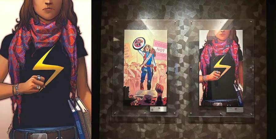 - Featured in the exhibition is her cover for the first issue of Ms. Marvel and her cover art of Captain Carter.