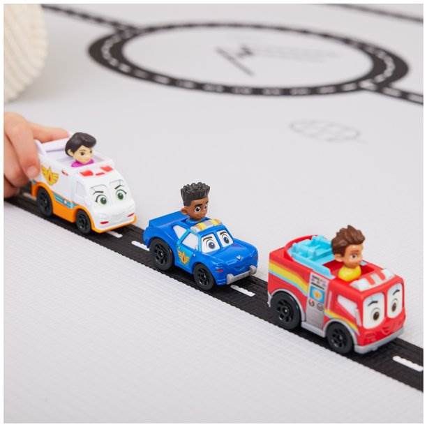 Get ready to roll into action alongside all your best Firebuds friends in the On the Move Rescue Team Diecast 3-Pack Vehicle Set! Featuring Bo and Flash, Jayden and Piston, and Violet with Axl, this set is a must-have for fans of the hit Disney Junior series! Each character is specially designed to look just like they do in the show and comes securely molded into their vehicles, so you can push them by hand or launch them into their next exciting adventure.
