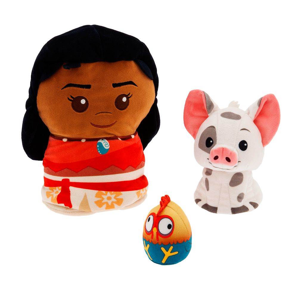 - Set includes three nesting plush: Moana, Pua and Hei Hei