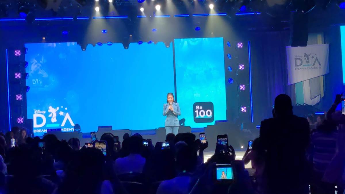 Before closing out the 2023 Disney Dreamers Academy ceremony, Dayna Lee (Manager HBCU Outreach) talks about Disney on the Yard, a program dedicated to building a community for HBCU alumni working across The Walt Disney Company and providing meaningful opportunities for students.