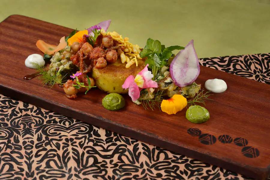 - Chaat: Seasonal vegetables from The Land at EPCOT and potato croquette with chana masala, kale pakora, tamarind, coriander chutney, and coconut raita (New) (Plant-based)