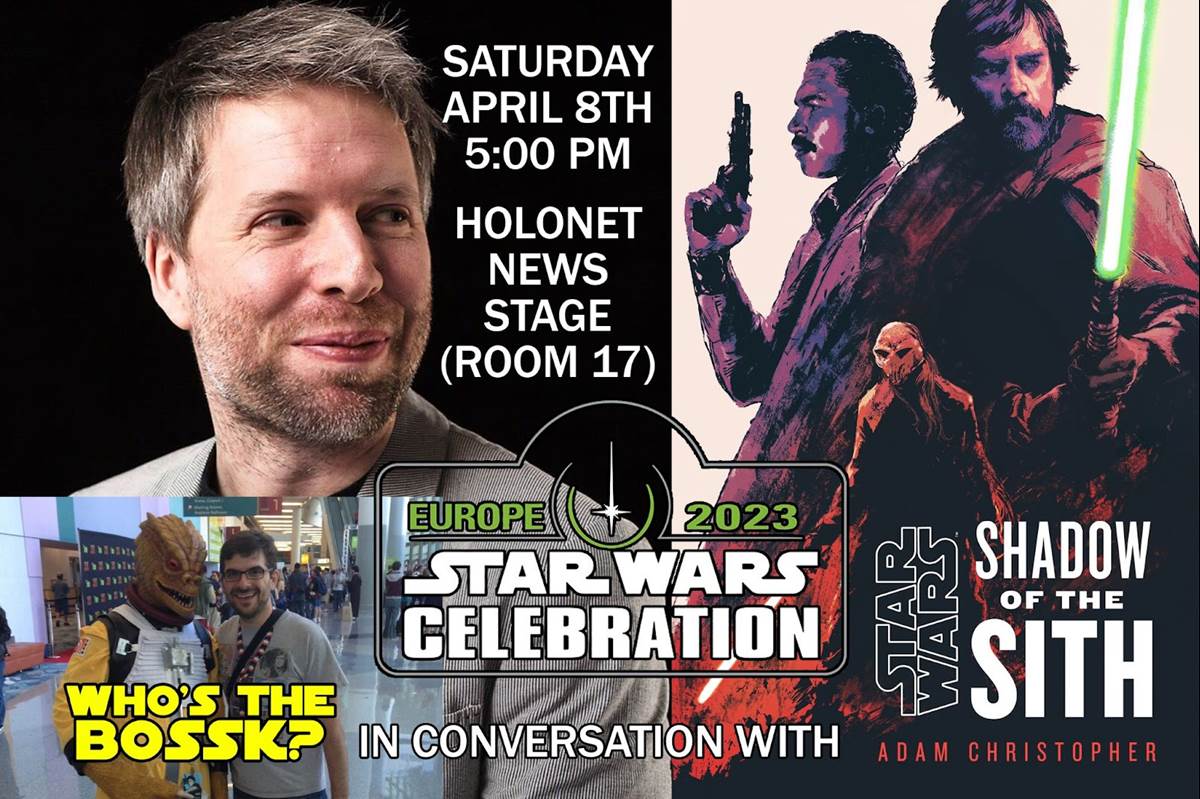 - The “Who’s the Bossk?" Star Wars Celebration Europe 2023 panel with guest Adam Christopher will be held on Sunday, April 8th at 5:00 PM on the Holonet News Stage (Room 17) in the ExCel Center.