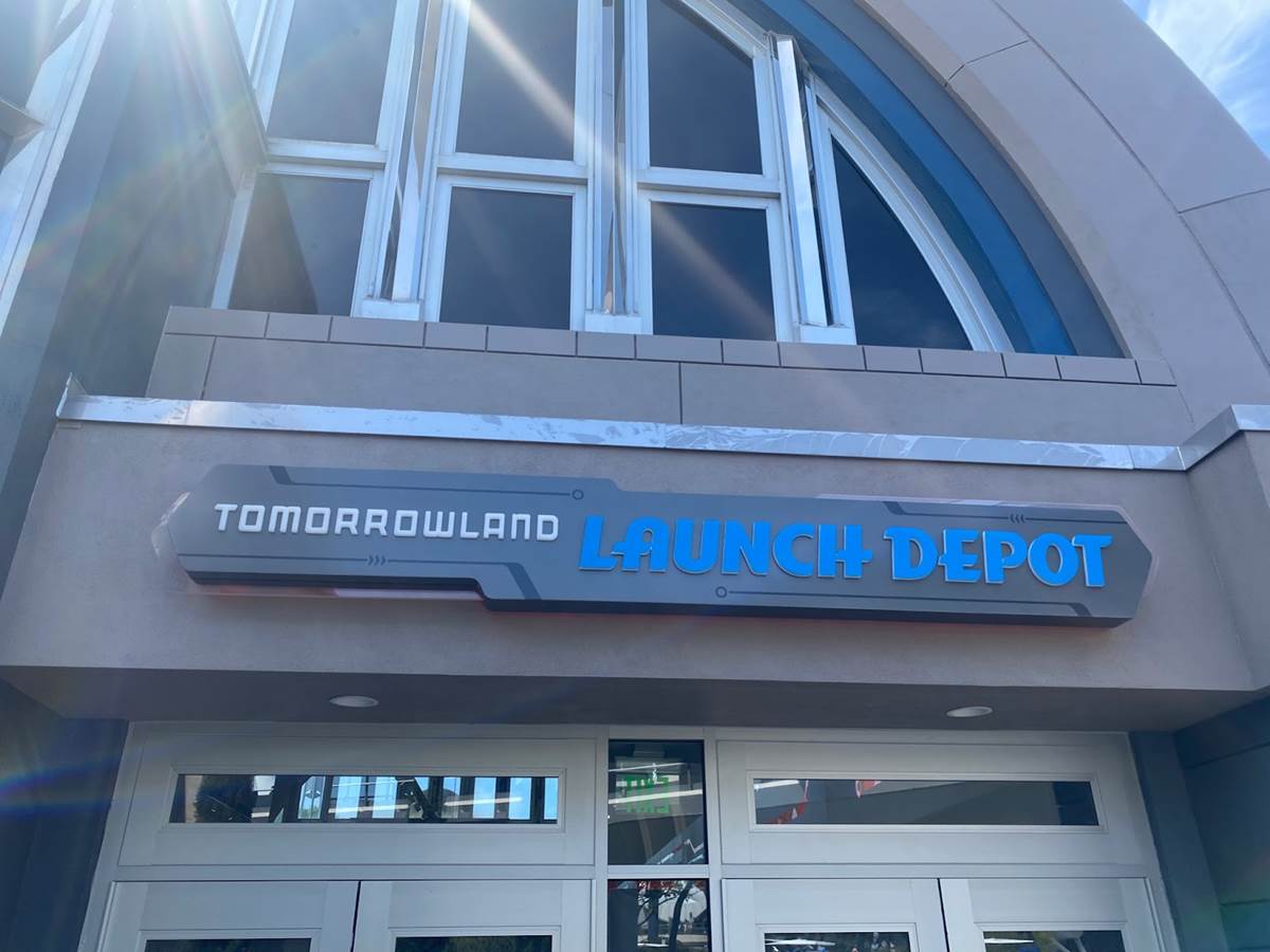 New signage for the renamed Tomorrowland Launch Depot store at the Magic Kingdom has been installed on the side of the building facing TRON Lightcycle / Run.