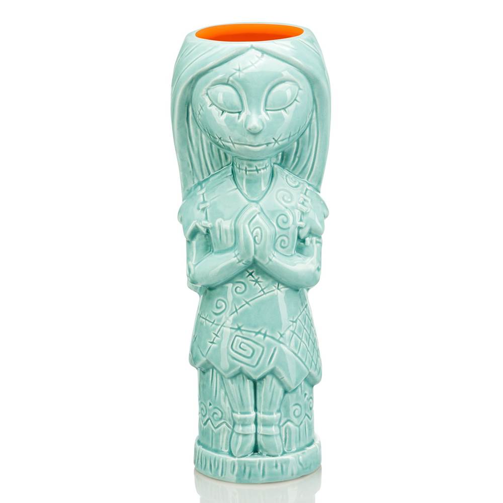 - The Jack Skellington Geeki Tikis mug measures 8.25 in tall x 3.5in wide. It features spooktacular black and white detailing and holds 16oz. The Sally Geeki Tikis® mug measures 8in tall x 3in wide and features an electrifying light blue glaze with a contrasting orange interior, and holds 12oz.