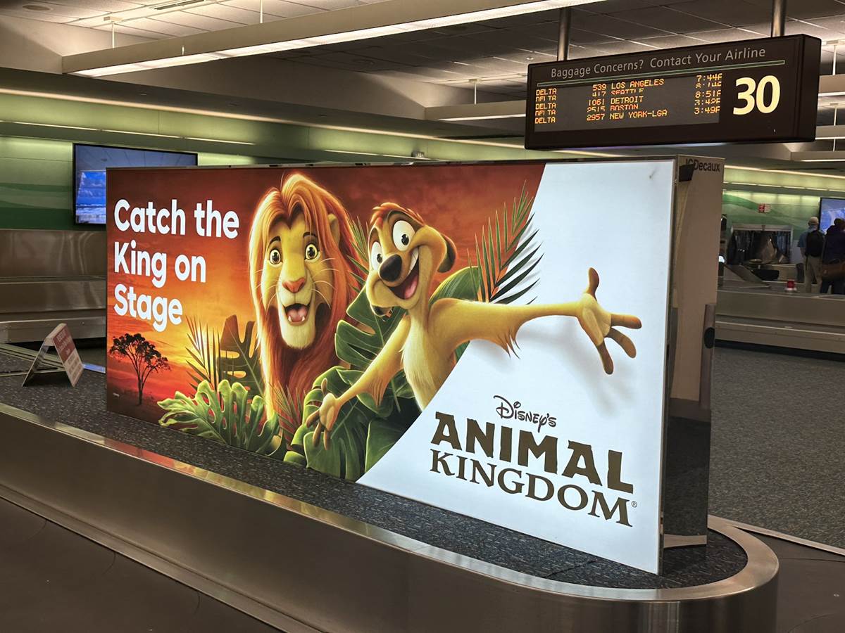 New advertisements can also be found nearby in the baggage claim area, similar to those found on billboards throughout the Orlando/Kissimmee area.
