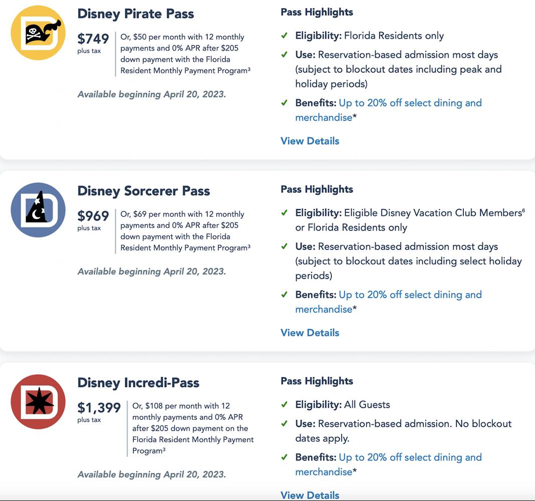 - The Disney Incredi-Pass, Disney Sorcerer Pass and Disney Pirate Pass will resume new sales and can be purchased online beginning Thursday, April 20th, 2023.