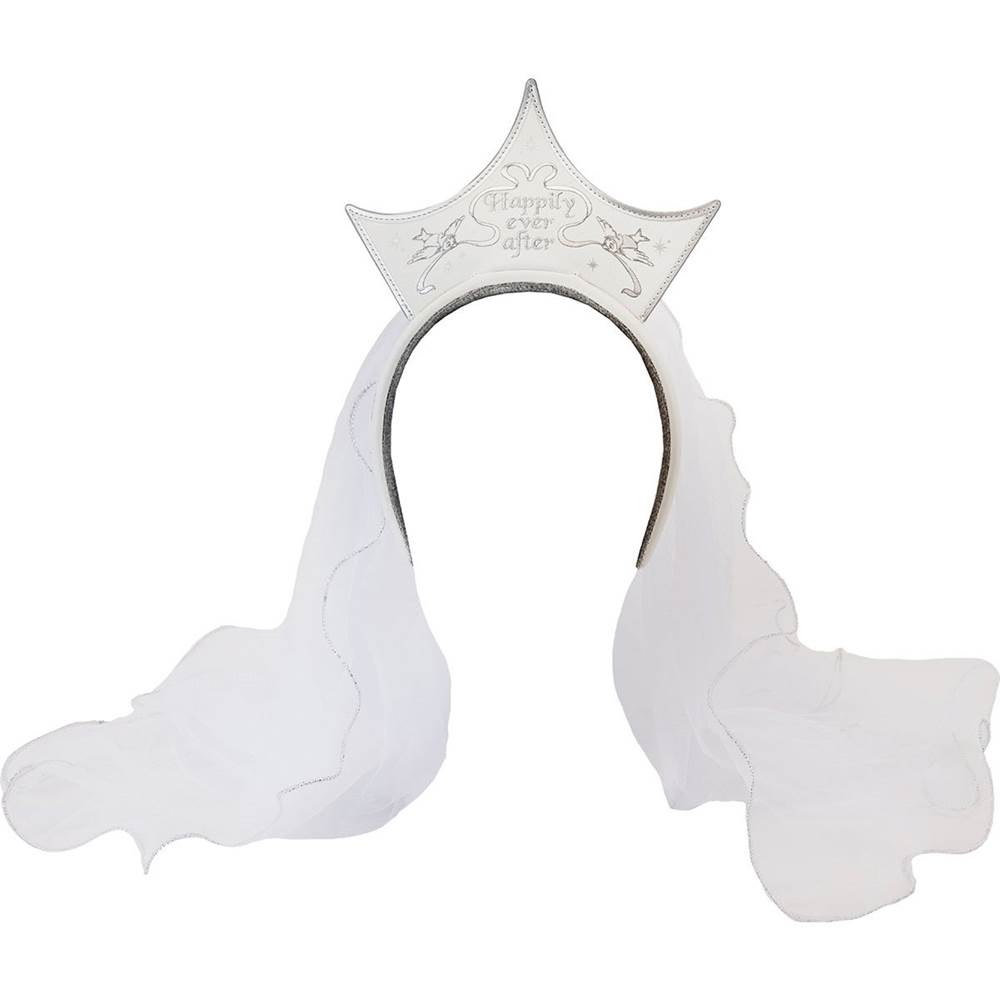- Designs include Cinderella and the Prince outside the castle, the couple in the back of the back of the carriage and a simple crown reading with birds holding up a “Happily Ever After" banner. The crown is part of the headband and also features a sheer veil.