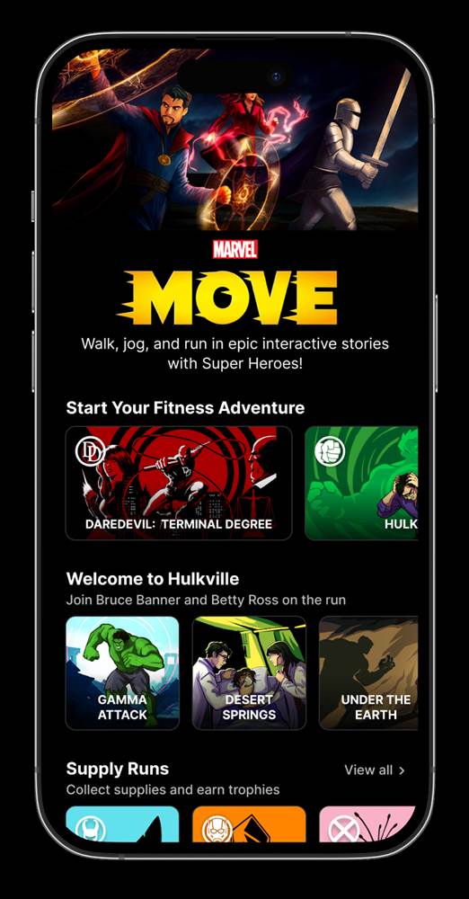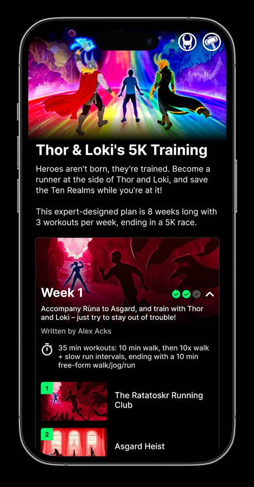 - With regular new workouts and ongoing storylines, users of all abilities can choose to walk, jog, or run through immersive, interactive audio narratives that will fully transport runners into the Marvel Universe.