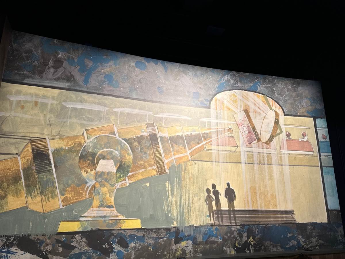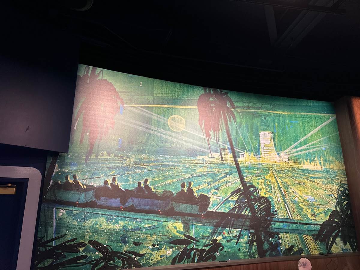 And now we arrive at the lounge itself, featuring a variety of murals designed by Disney Legends such as Mary Blair, John Hench and Herbert Ryman. Some historic Disney gems can also be found within, such as the K7 Space Suit worn by the Tomorrowland Astronauts during the early years of Disneyland, and the Space Station S-1 Model from the Disneyland television series.