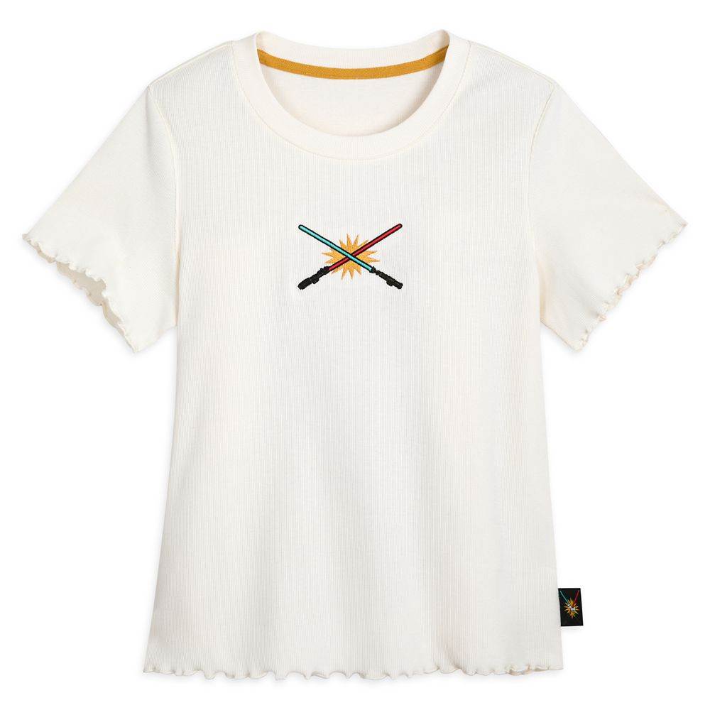 The Star Wars Ribbed Top, embroidered with a design of light side and dark side lightsabers makes for a fierce, fun, and retro chic statement – no matter which side you choose.
