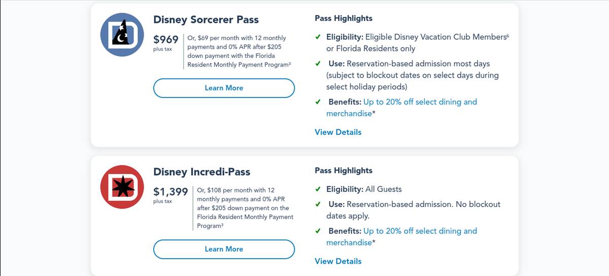 - Disney will continue to offer payment plans with 0% APR on monthly payments after a down payment for Florida residents.
