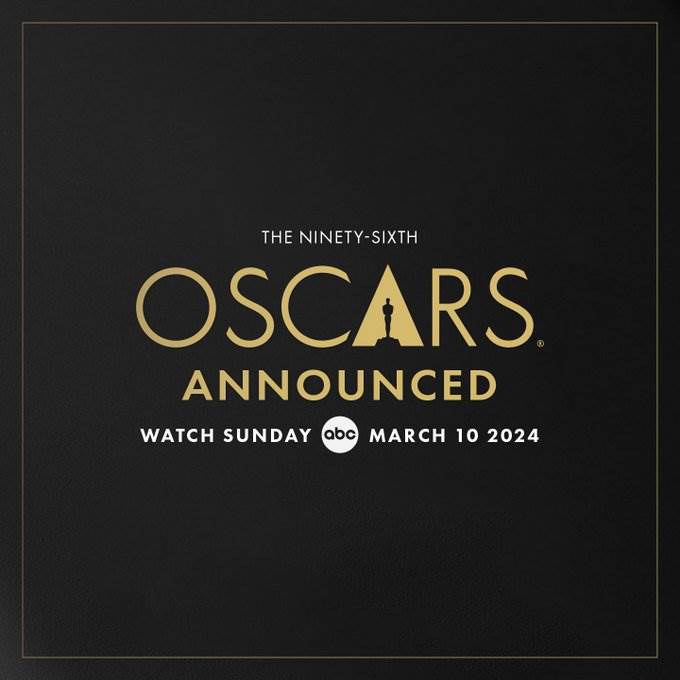 - The Academy of Motion Picture Arts and Sciences and ABC today announced the 96th Oscars will take place Sunday, March 10, 2024.