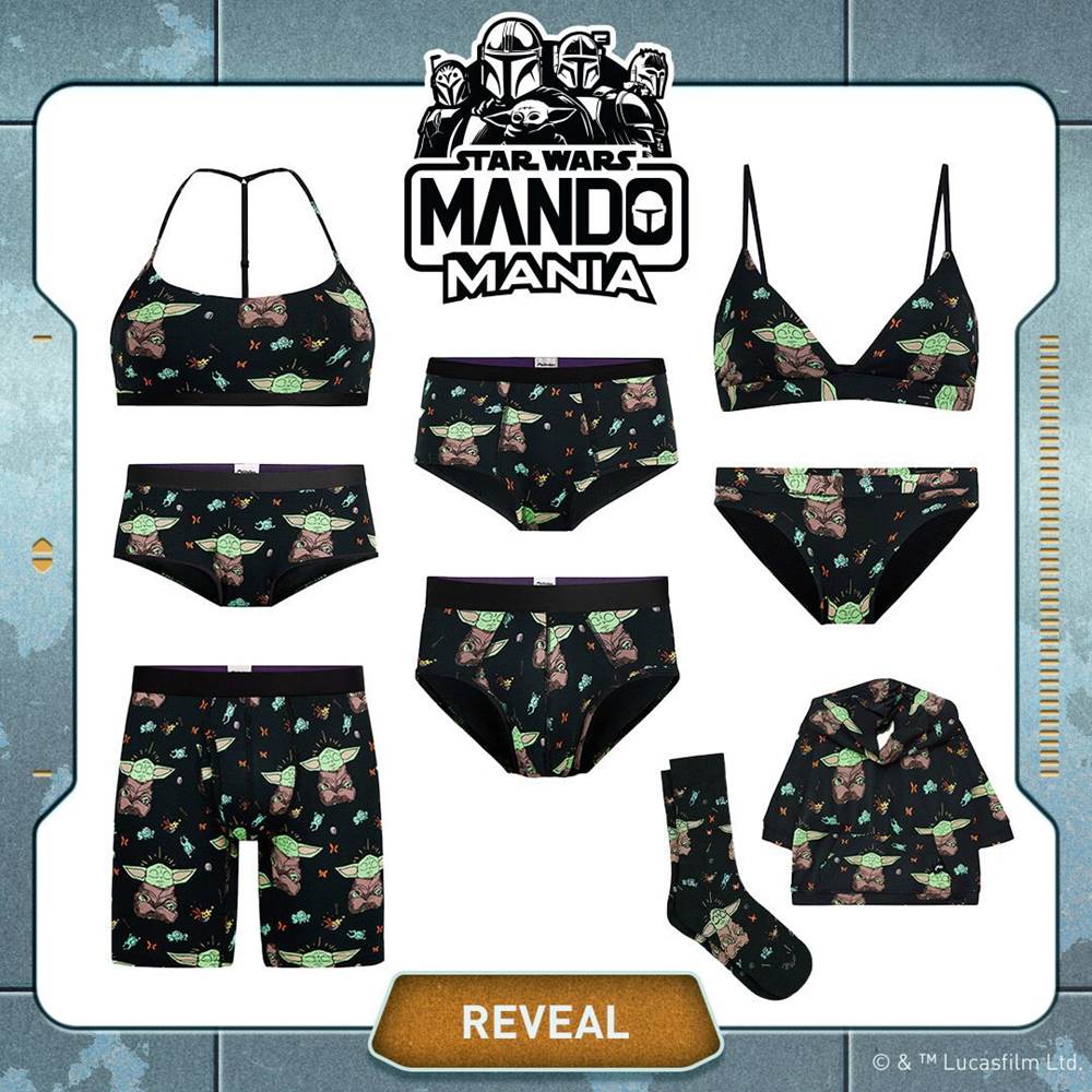 MeUndies celebrates the galaxy far, far away with this charming Grogu print, featured on new releases for men, women, and pets. Sign up for first access on-site today.