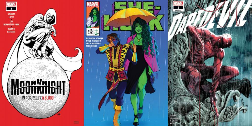 - “Moon Knight: Black, White & Blood #3" by Ann Nocenti, Jim Zub, Dan Slott, Erica Schultz, Stefano Raffaele, David Lopez, and Djibril Morissette-Phan
