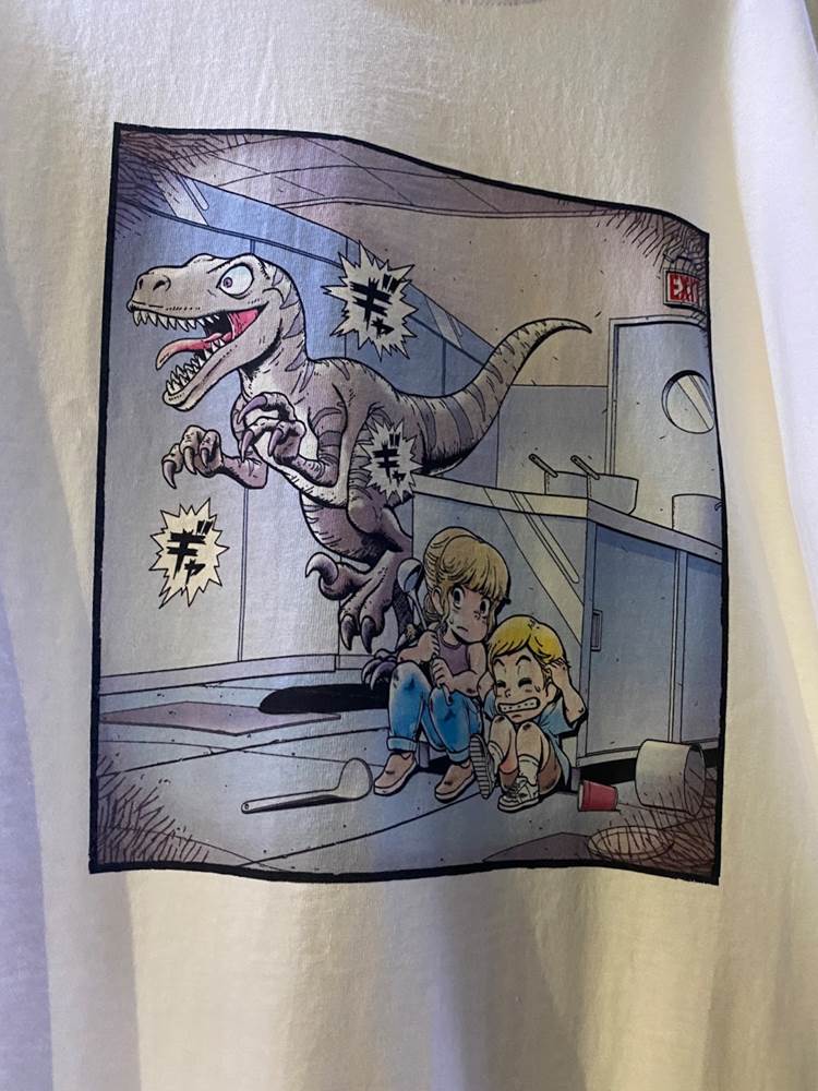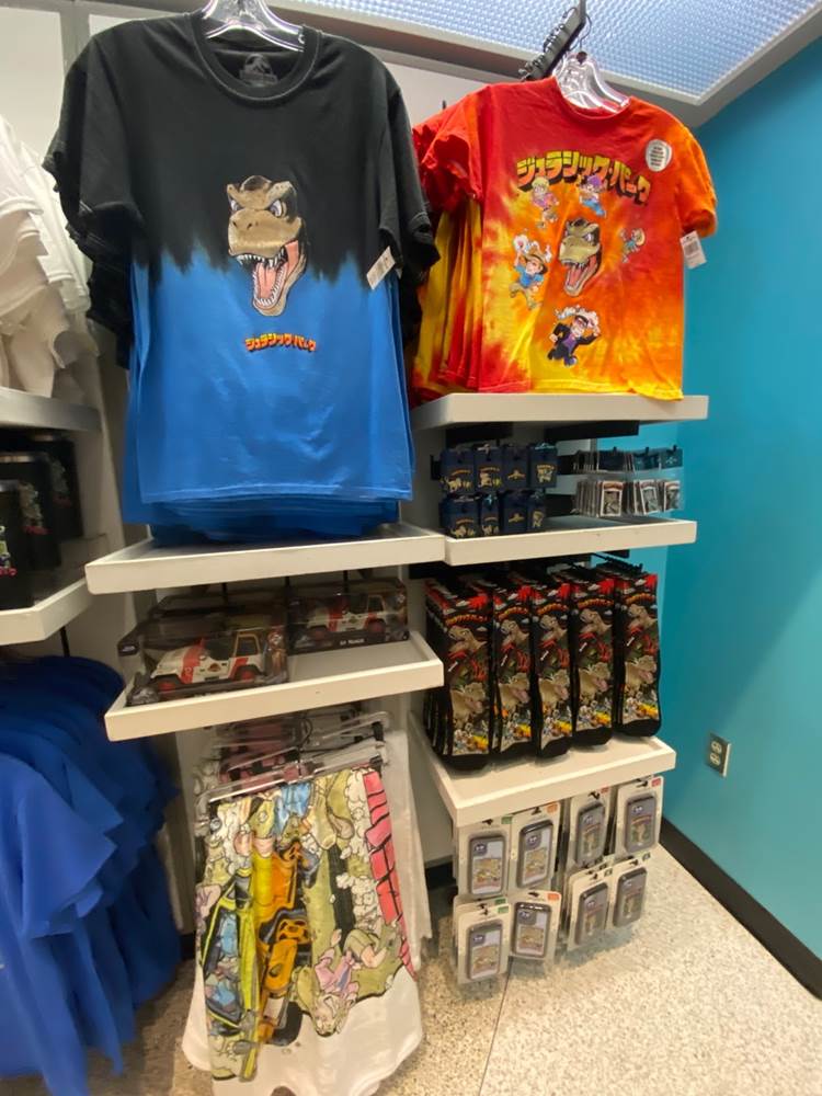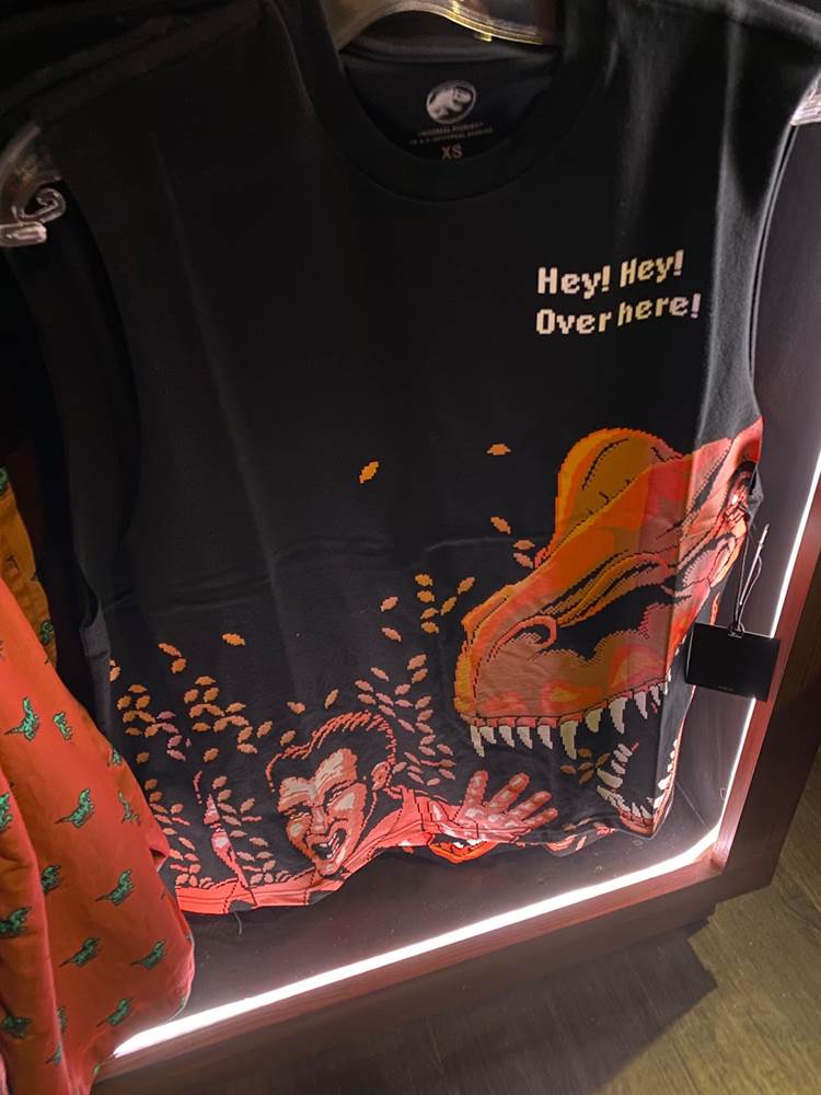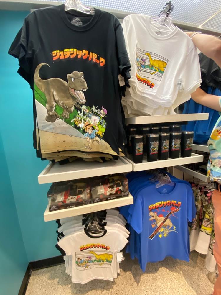 More anime-influenced merchandise can be found, including a t-shirt that celebrates the classic scene featuring velociraptors in the kitchen.