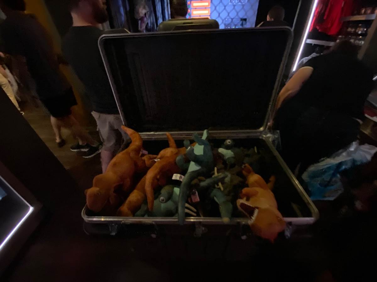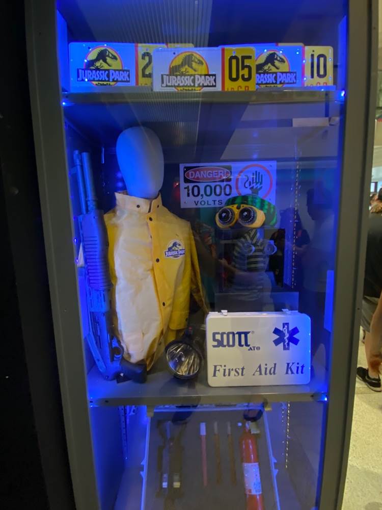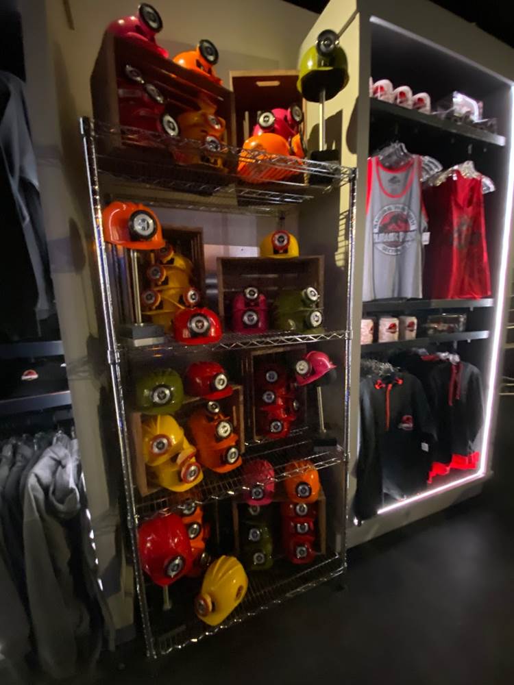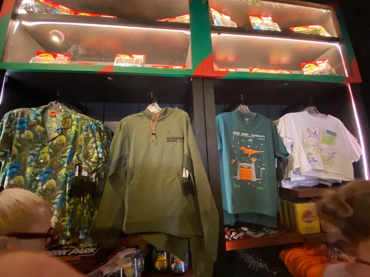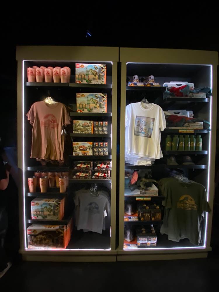 This room features display cases with props (including those heavy and expensive night vision goggles) as well as merchandise akin to what you would find throughout the park, including light-up helmets and generic Jurassic Park t-shirts.