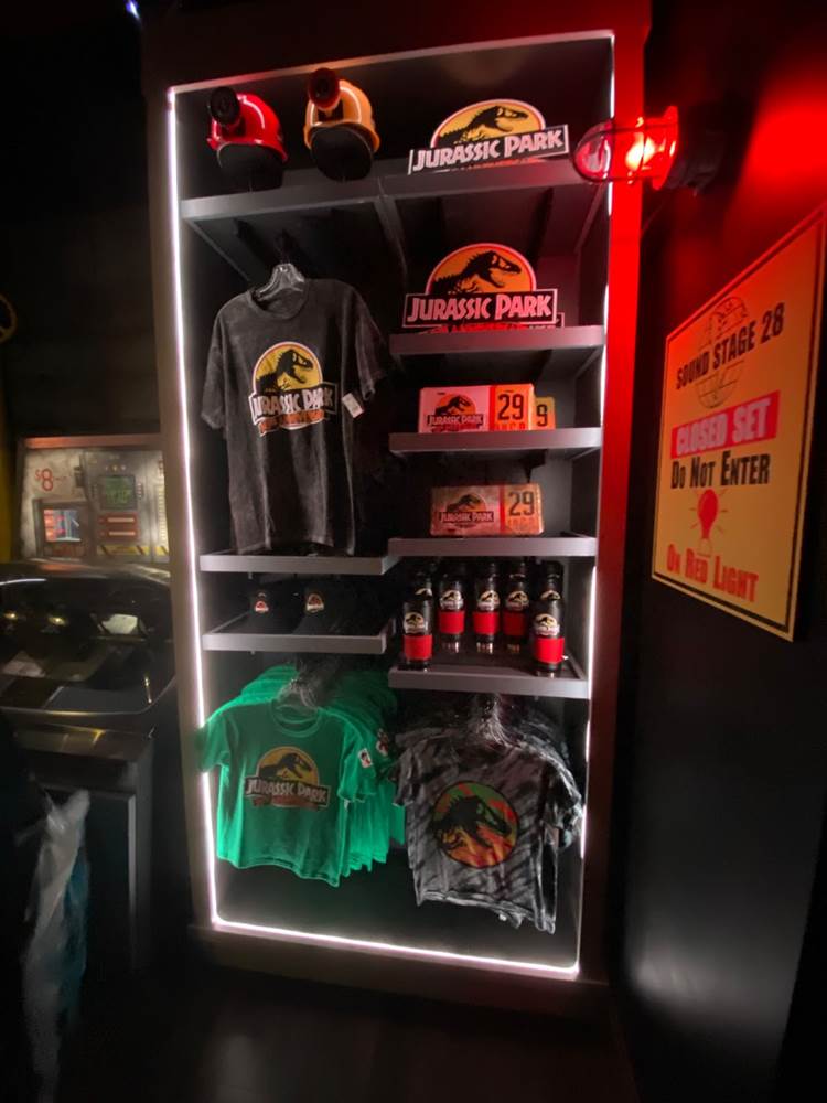 In the video below, you can get a sense of how the store is laid out once you go inside. The first section is themed as the Pre-Production offices, followed by a trip into the darkness of Soundstage 28, followed by a journey through the Jurassic Park archway celebrating the release of the film. After the video, we’ll take a closer look at each of these sections.