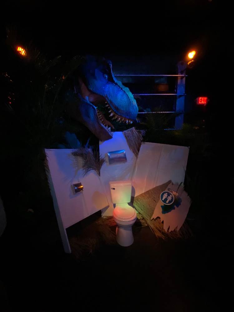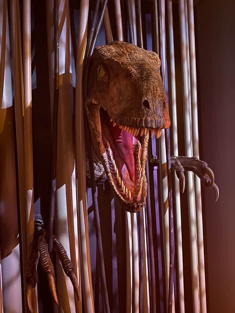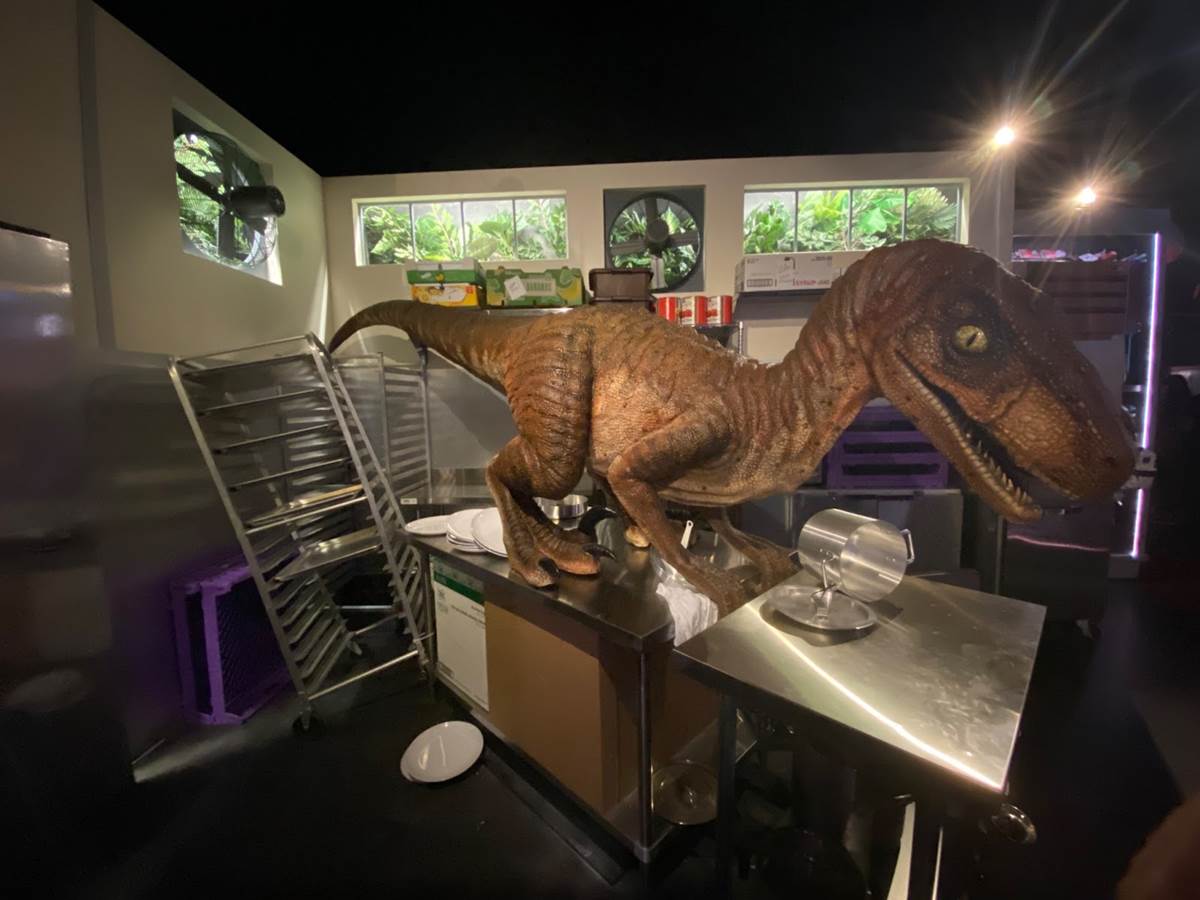The real draw to this room are several different photo spots, one of which features the Dilophosaurus that took out Dennis Nedry (and the accompanying East Dock sign he took out with his Jeep). The T-Rex takes up most of the room, but right beneath her you can take a seat on a prop toilet as the rain is projected from nearby to recreate the classic moment featuring the blood-sucking lawyer, Donald Genarro. You can hide on the ground in a faux-kitchen from a Velociraptor, or if you want another Raptor shot, head further into the room and you can recreate the control panel scene when Ellie Sattler reboots the park’s power grid only to be hunted by one of the ferocious creatures.