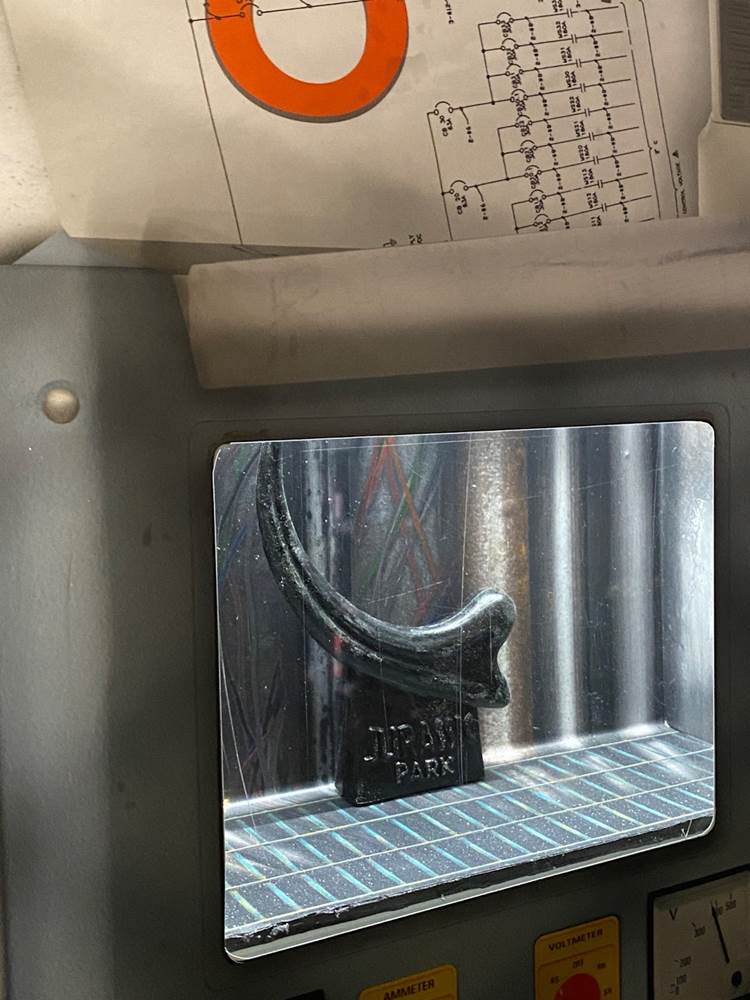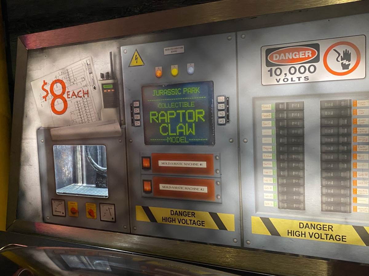 There is so much Raptor fun in this room, that this is where the second of two mold machines are, this one featuring a replica raptor claw.