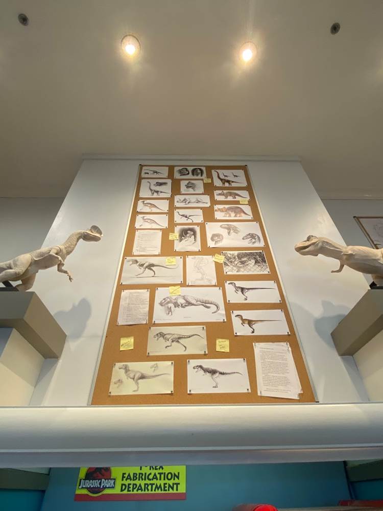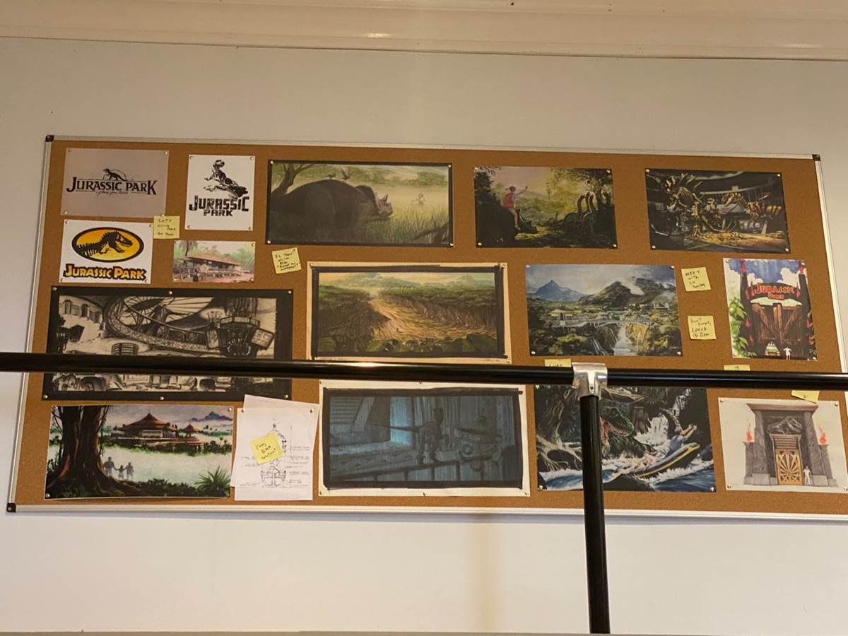 The pre-production offices celebrate the first stage of planning for the iconic film, and even note the stop-motion animation roots of the film and other nods to the landmark groundbreaking visual effects. This location is full of concept art, sketches, molds, maquettes, and even full size dinosaur torsos hanging from the ceiling.