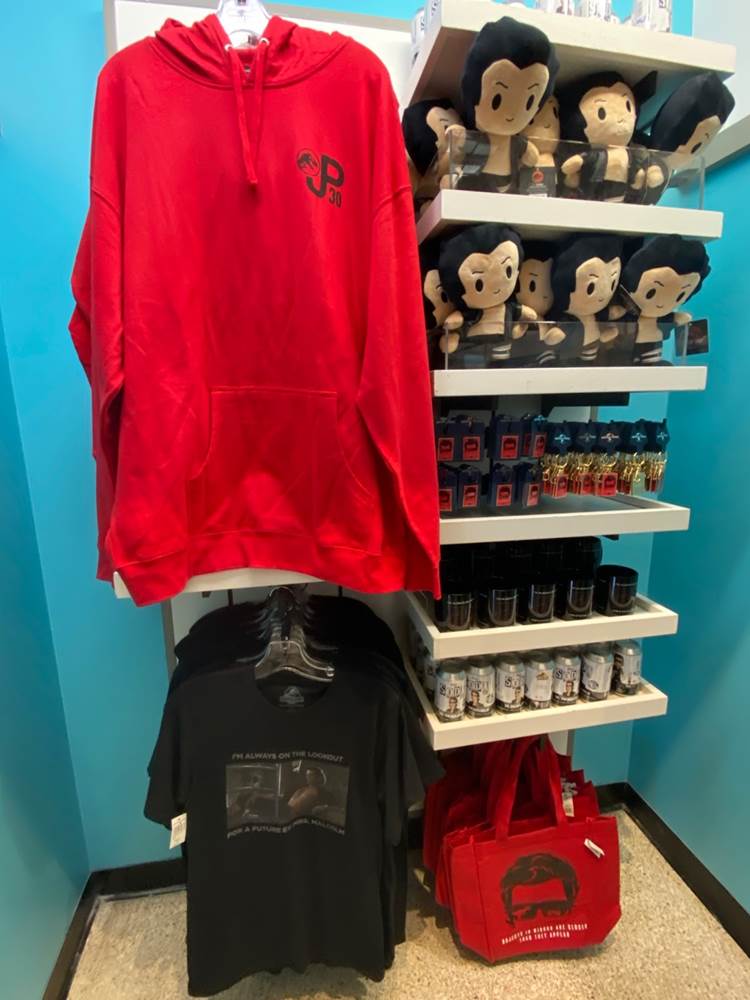 Many of the items in the store have previously been seen in online retailers or other locations. The Jurassic Park tribute store carries many shirts and shorts from The Roosevelts, Funko Soda figures, and even home goods from Accompany. There is even a shelf that is sure to become a fan favorite, featuring a full collection of Ian Malcolm (played by the legendary Jeff Goldblum) themed items.