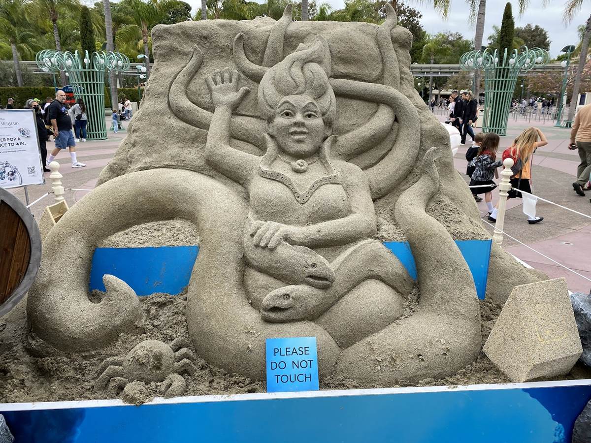 With the release of The Little Mermaid now in theaters everywhere, a new sand sculpture has appeared at the Disneyland Resort.