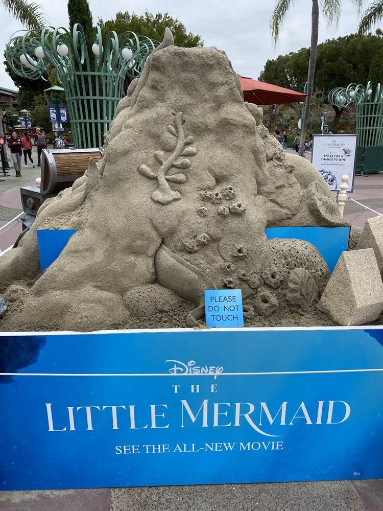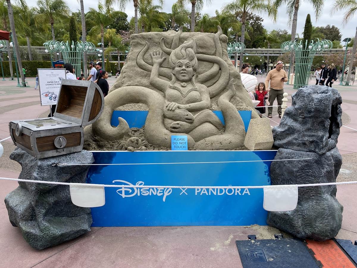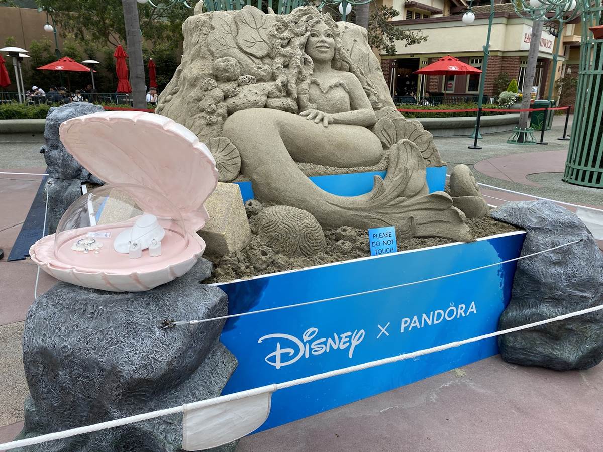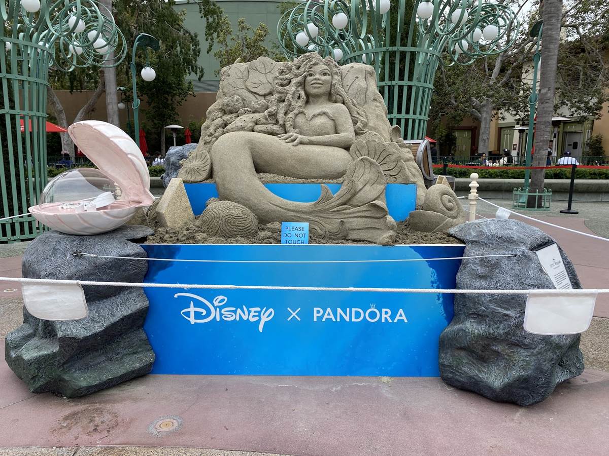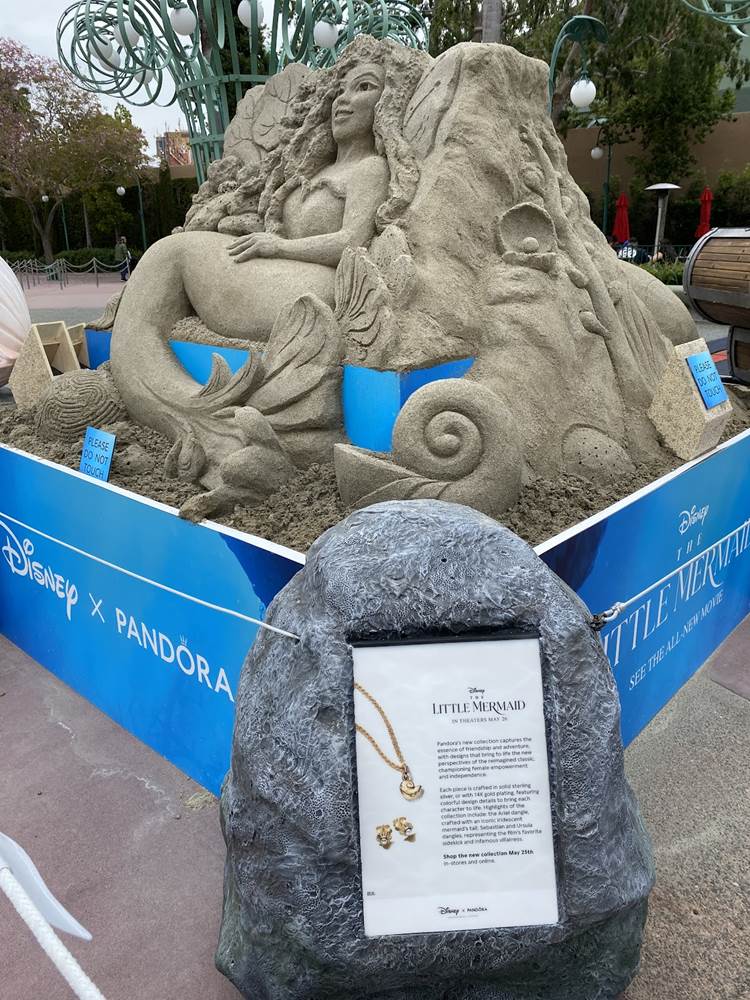 - Presented by Pandora Jewelry, a new sand sculpture has appeared on the Disneyland Esplanade celebrating the release of The Little Mermaid in theaters everywhere.