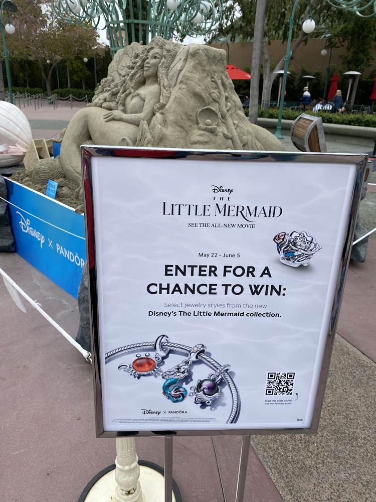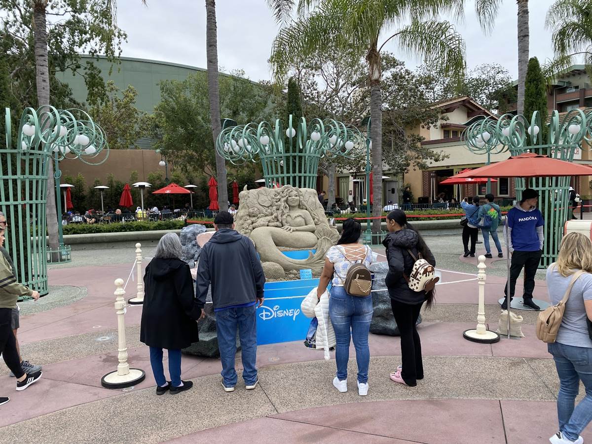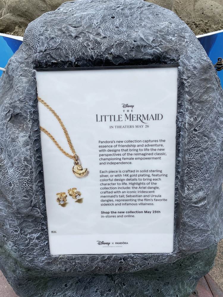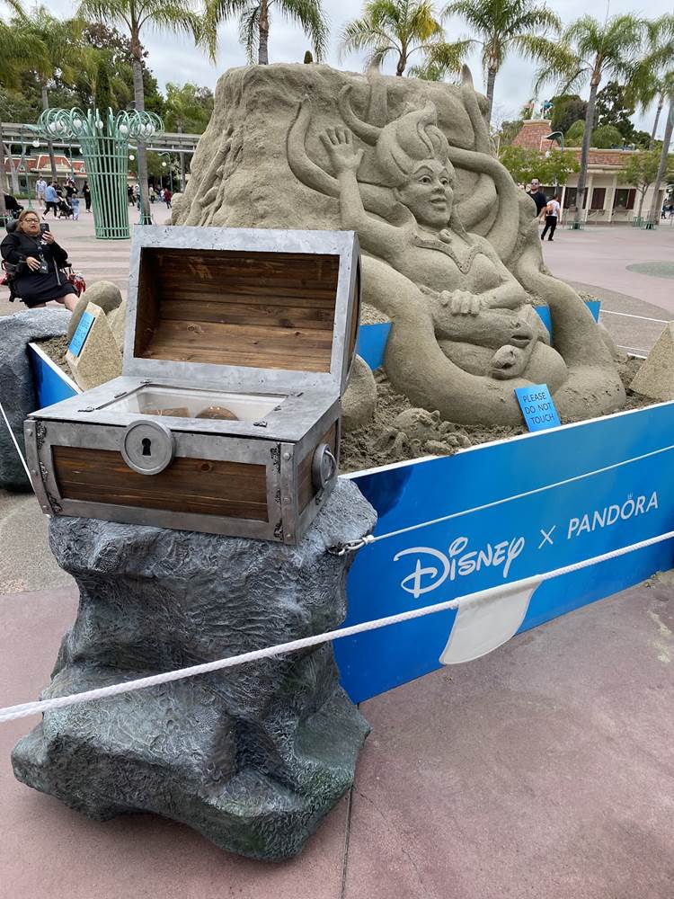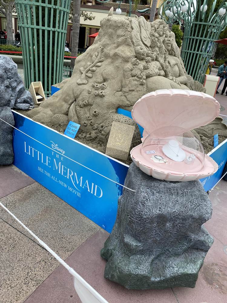 - Presented by Pandora Jewelry, a new sand sculpture has appeared on the Disneyland Esplanade celebrating the release of The Little Mermaid in theaters everywhere.