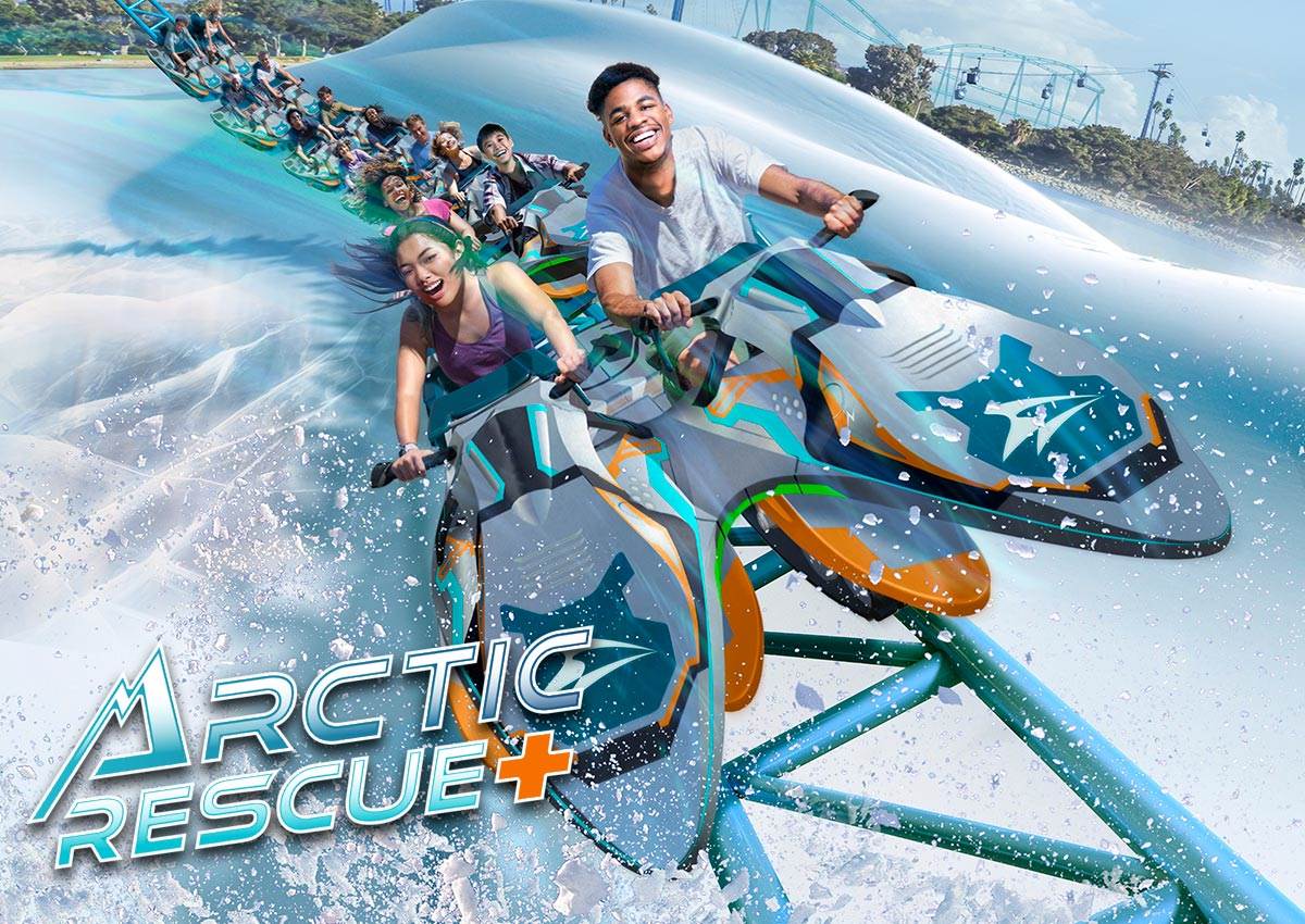 - It’s time to hop on your snowmobile and ride to the rescue! The ice is melting, the poachers are lurking, and the Arctic animals are in peril. Join the team and feel the rush of the fastest and longest straddle coaster on the West Coast: Arctic Rescue.