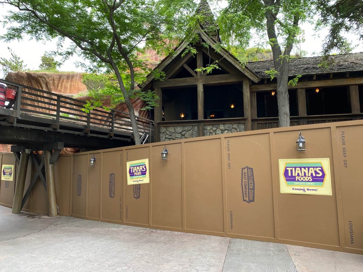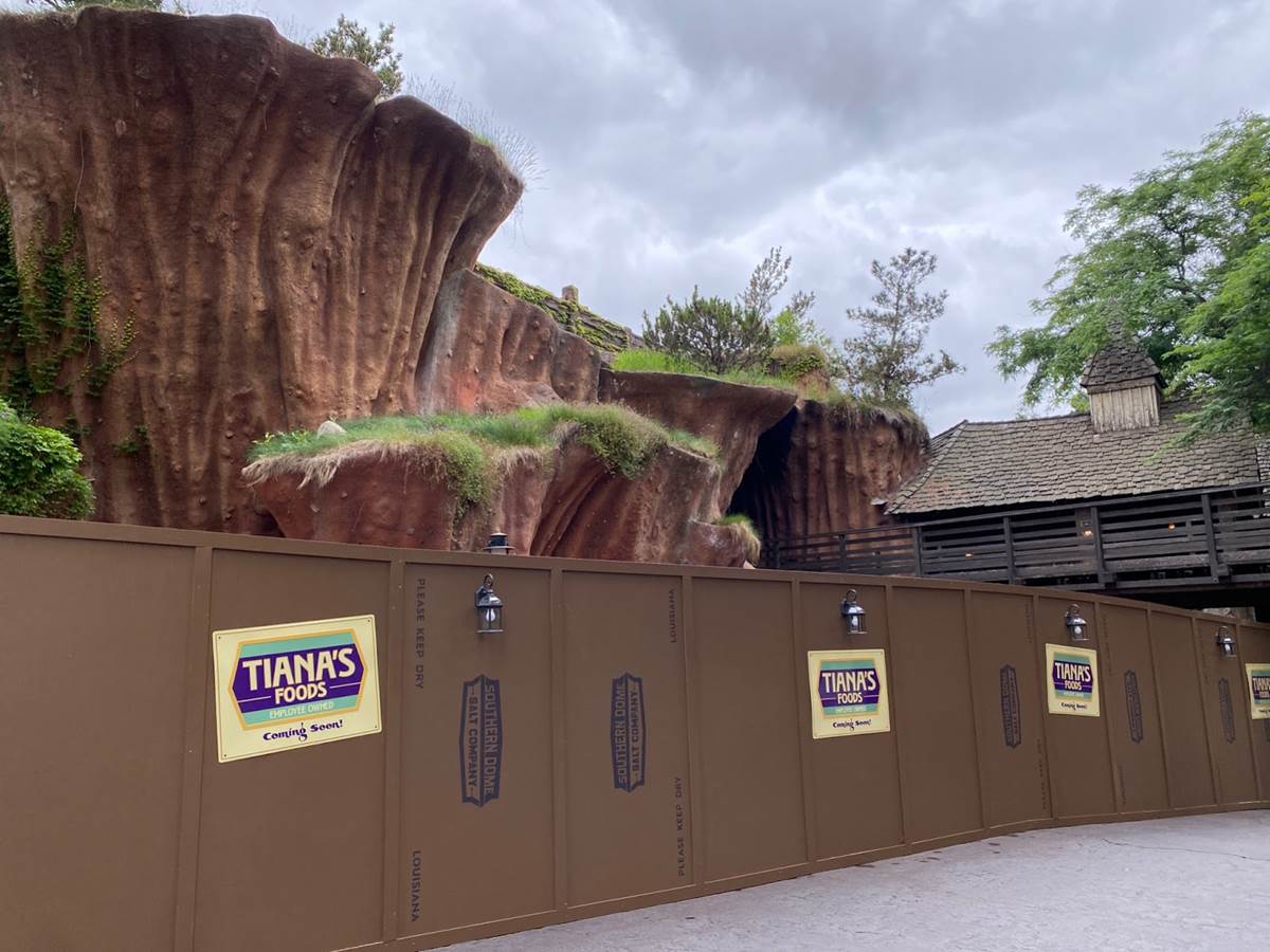 The further you get into Critter Country, the more construction walls you’ll find. These feature the Tiana’s Foods logo in addition to the Southern Dome Salt Company logo.