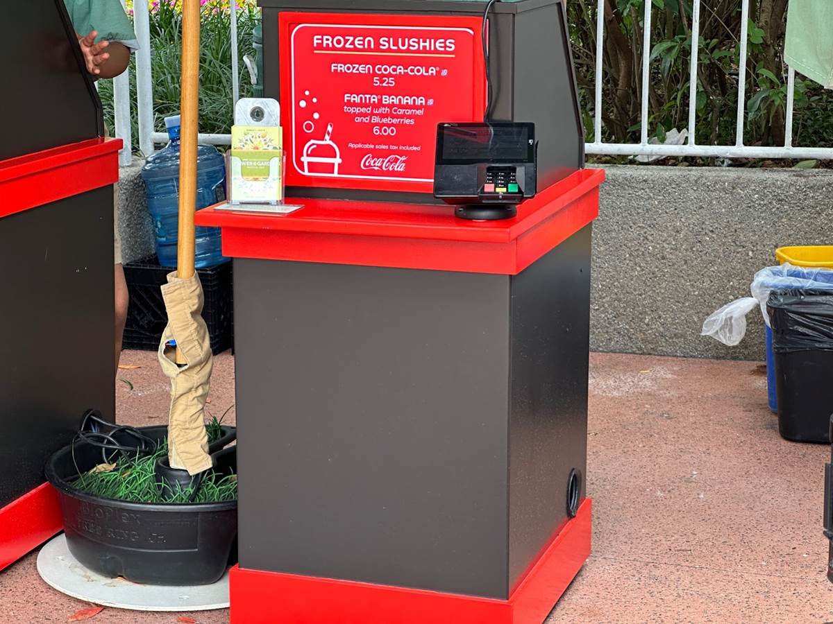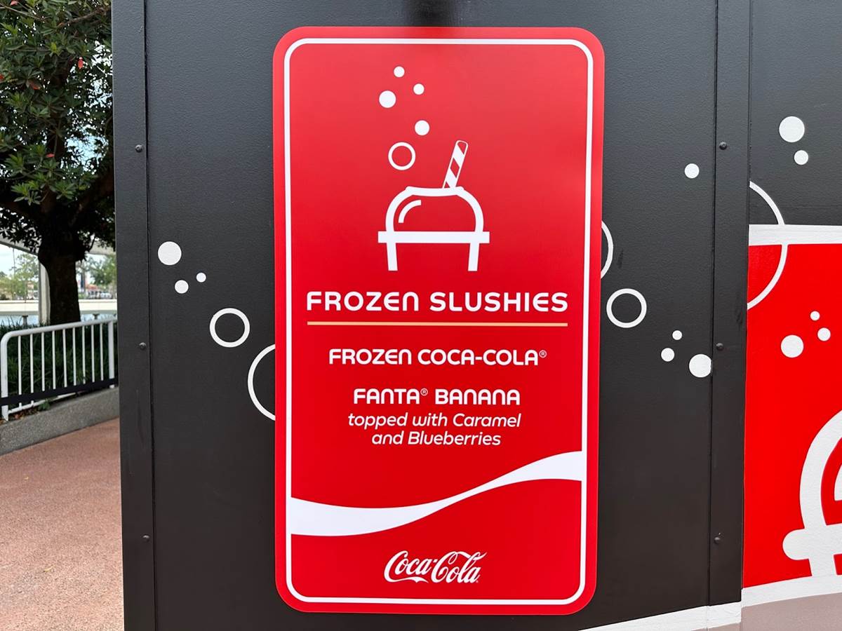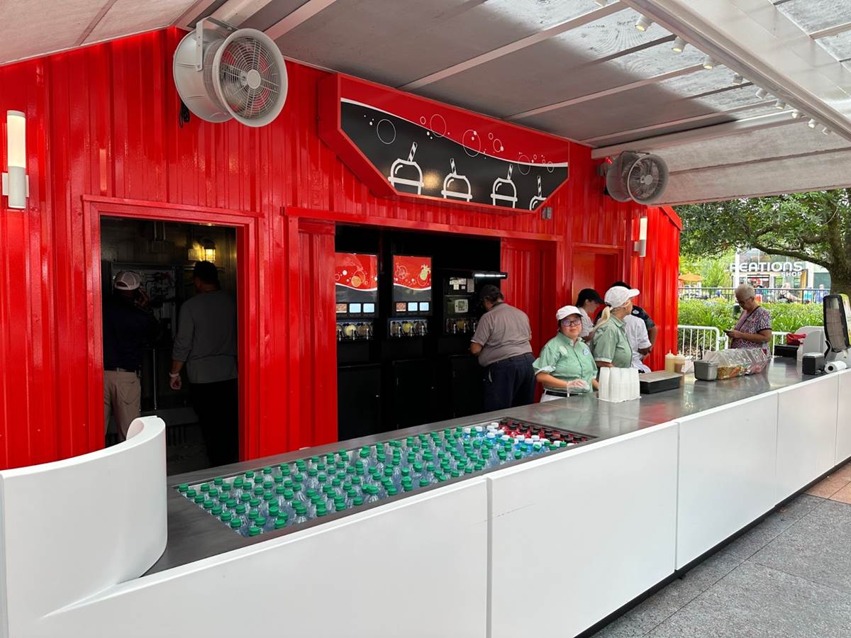 Over near Test Track, the Refreshment Station has reopened with a new look and new menu that includes Frozen Coca-Cola and Frozen Fanta Banana.