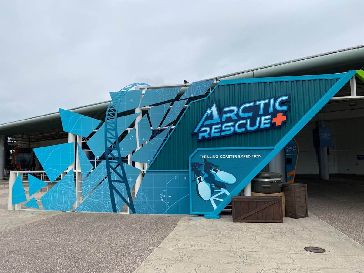 The family friendly coaster features speeds of up to 40 mph and 3 launches across 2,800 ft of track. The ride’s station makes use of one of the former Wild Arctic simulator bays, while the coaster experience itself takes place outside.