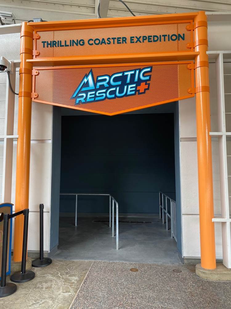 Guests will be able to enter directly into Wild Arctic through this green archway, bypassing the coaster if they so choose.