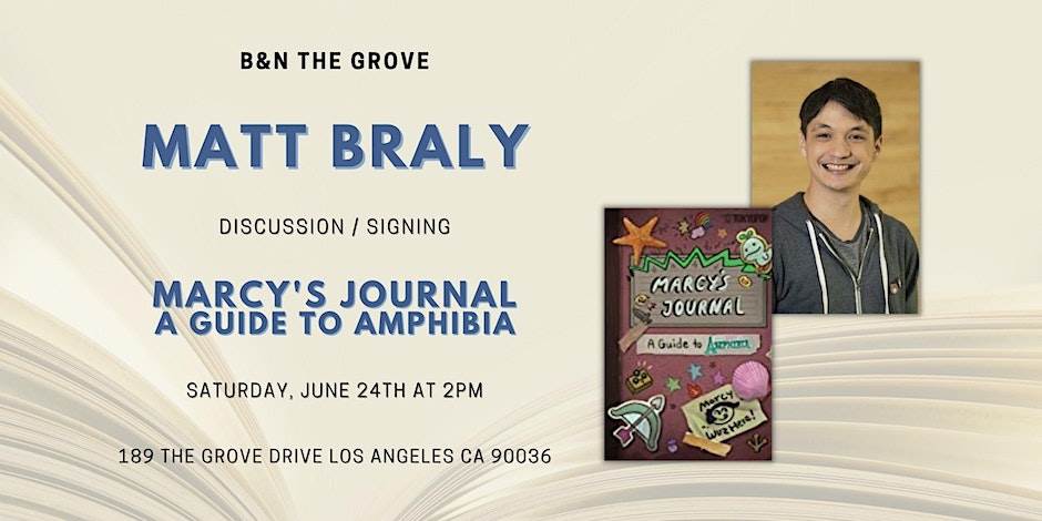 - Fans of the hit Disney Channel series, Amphibia, can head to Barnes & Noble - The Grove at Farmers Market on June 24, 2023, in Southern California as they welcome animator, storyboard artist, director, writer, and producer, best known for creating and executive-producing the Disney animated series Amphibia, as well as directing on Gravity Falls and Big City Greens, Matt Braly, to the store to discuss and sign MARCY'S JOURNAL: A GUIDE TO AMPHIBIA.