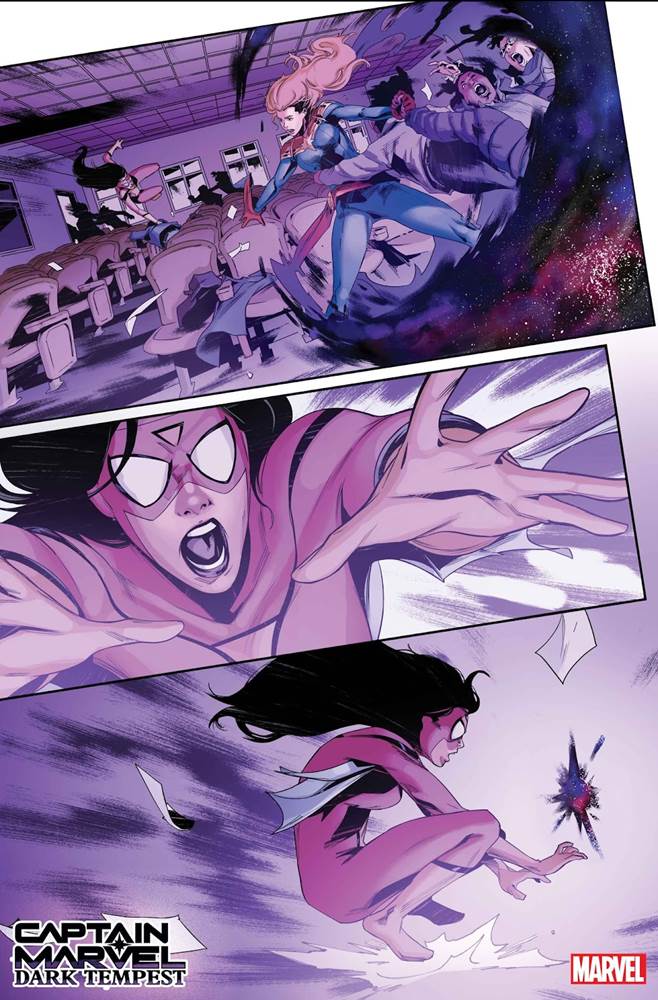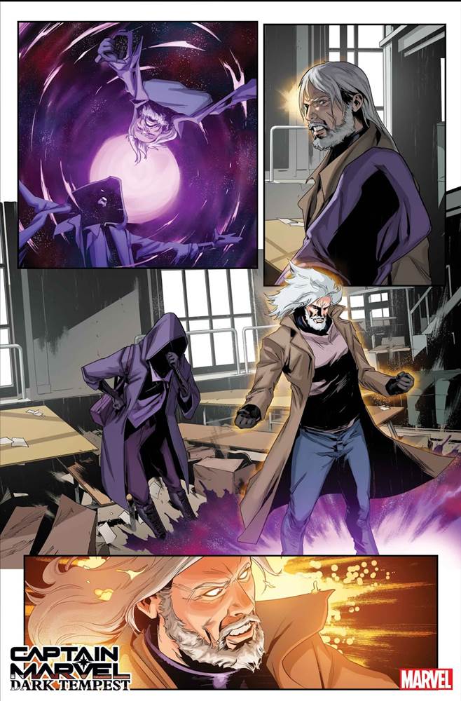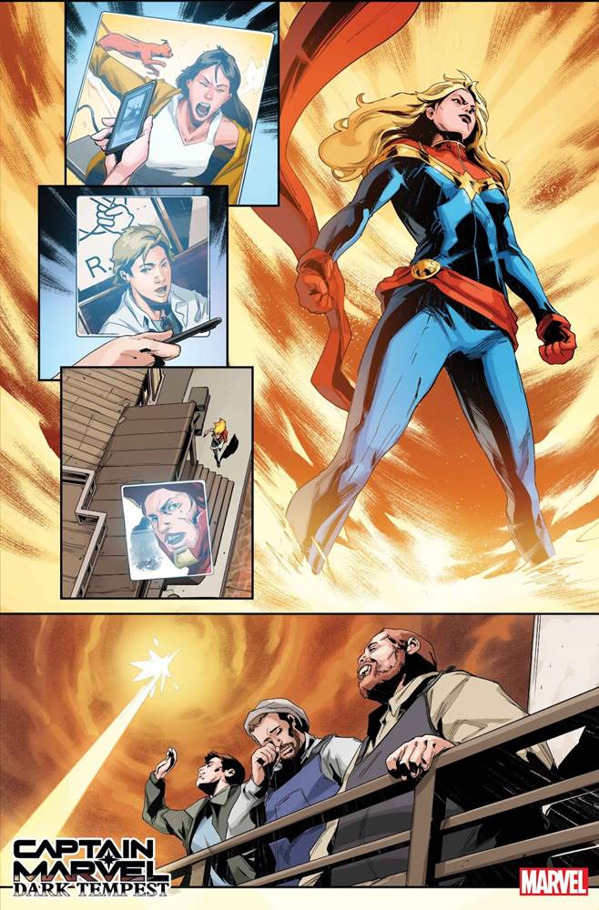 - A special first look at “Captain Marvel: Dark Tempest #1" shows Carol rocketing straight up into orbit, where she engages in a high-flying battle that shows off her powers and her might, while another page offers a glimpse of Nitro and his new partner in the midst of their latest scheme.