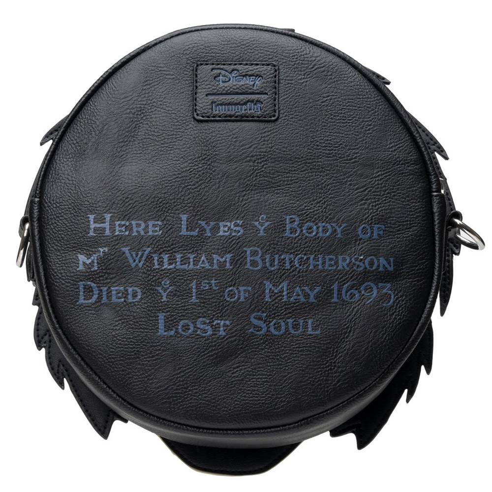 - Billy Butcherson is up first on a round crossbody bag that features his head complete with messy hair and lips sewn shut. His sad eyes seem to know his fate and the back of the bag has his tombstone inscription: “Here Lyes ey Body of Mr William Butcherson | Died ey 1st of May 1693 | Lost Soul."