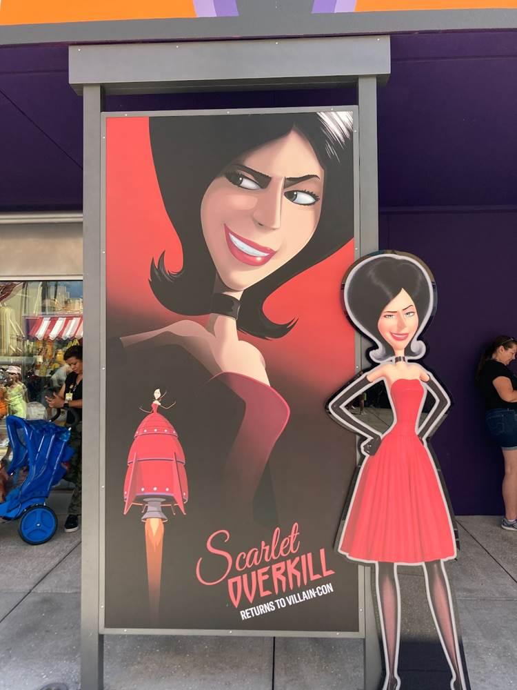 Aside from the new Evil Stuff shop, work continues on the rest of Minion Land. Construction walls have been most removed from the front of Illumination’s Villain-Con Minion Blast, revealing posters and cutouts for some members of the Vicious 6.