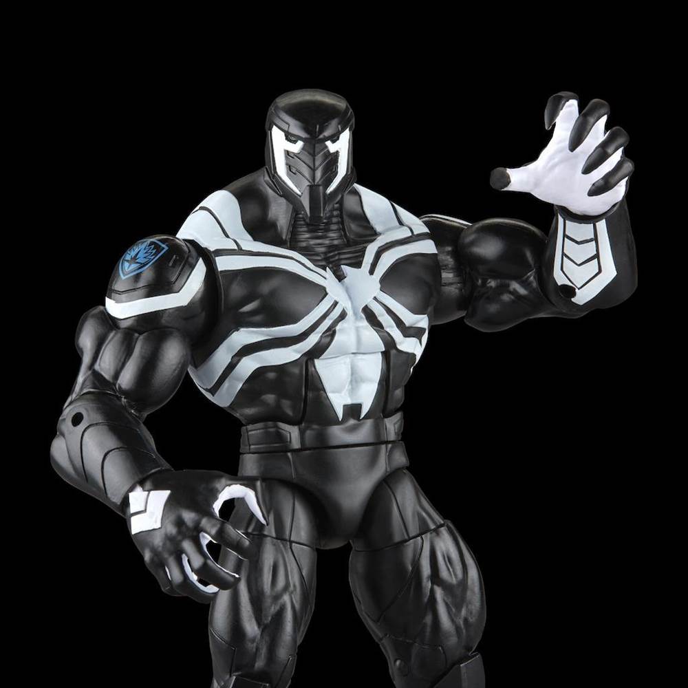 • Venom Space Knight and Mania appear in shocking black and white, signature to the alien symbiote. Venom also features the Guardians of the Galaxy/Nova Corp insignia on his shoulders while Mania sports a wild mohawk and lots of spiky accessories.