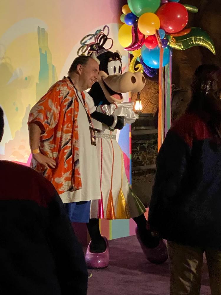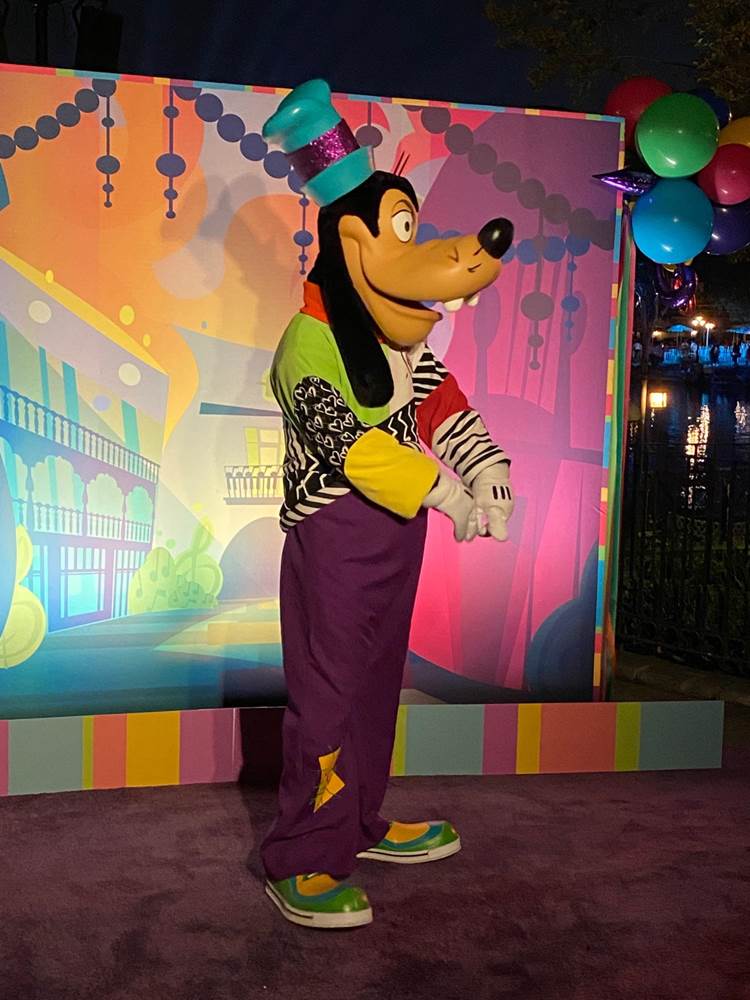 Goofy met with guests in his specially created costume in front of a colorful New Orleans backdrop.