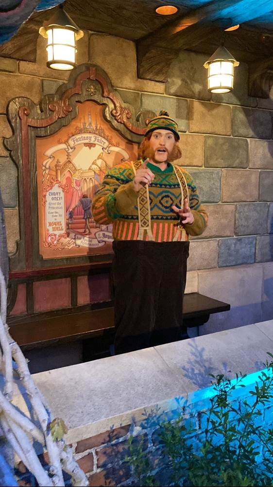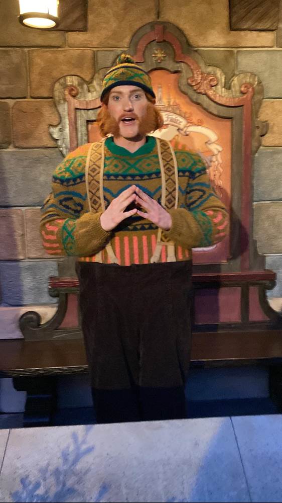 Wandering Oaken from Frozen made a rare appearance in the Fantasy Faire, alternating with Anna and Elsa in their Frozen II outfits.