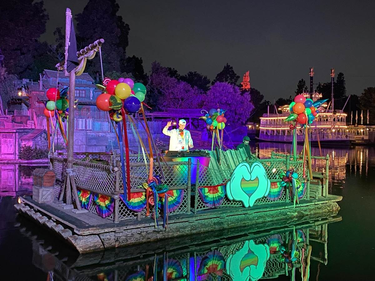 Rainbow colored balloons and bunting decorated the shores of the Rivers of America, which also served as home to a fun dance party along the water’s edge.