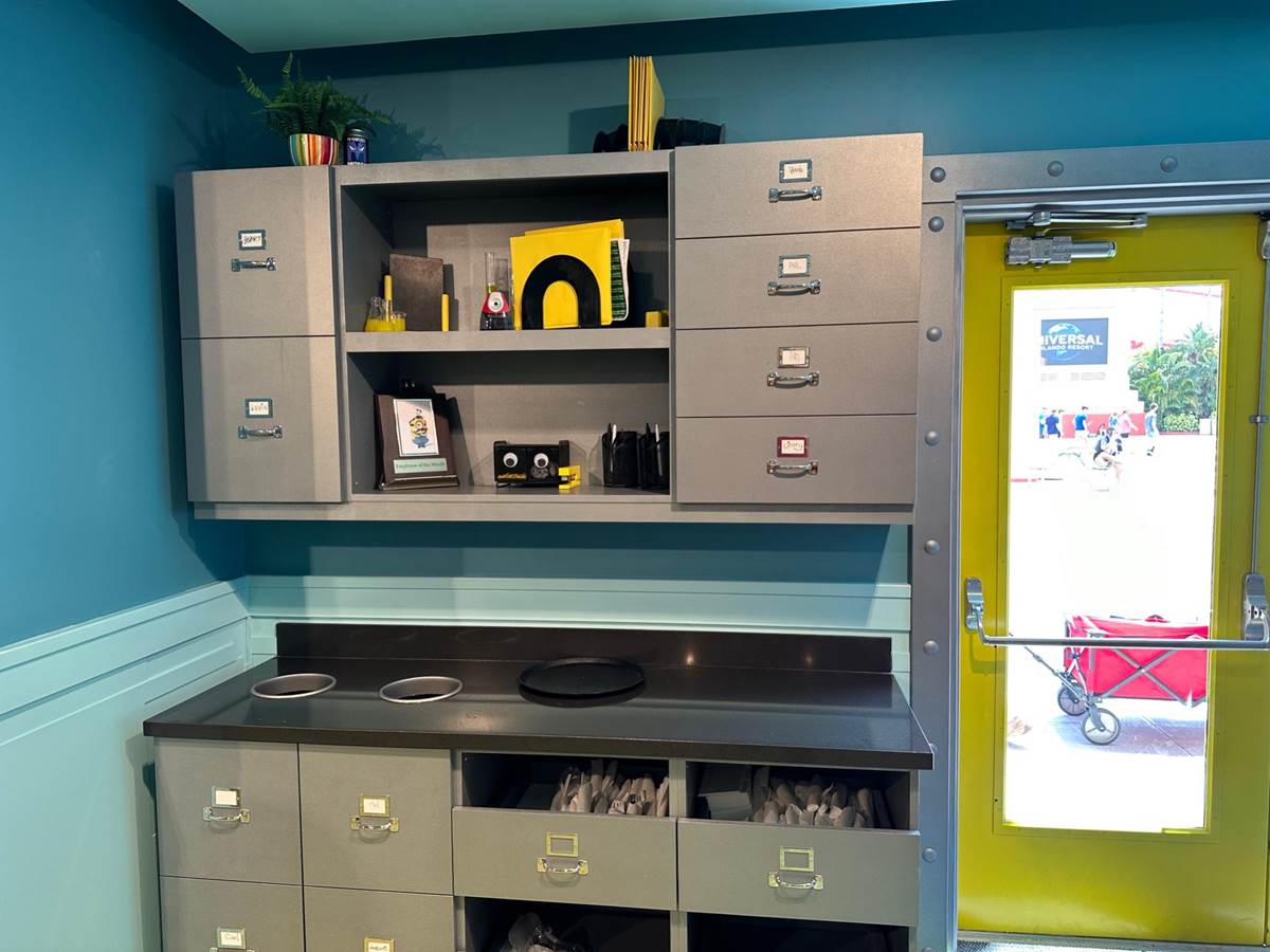 Up next is the Breakroom, where guests can dine in the Minions’ break space that includes everything from “Office Safety Tips" to a vending machine stocked with mischievous items.